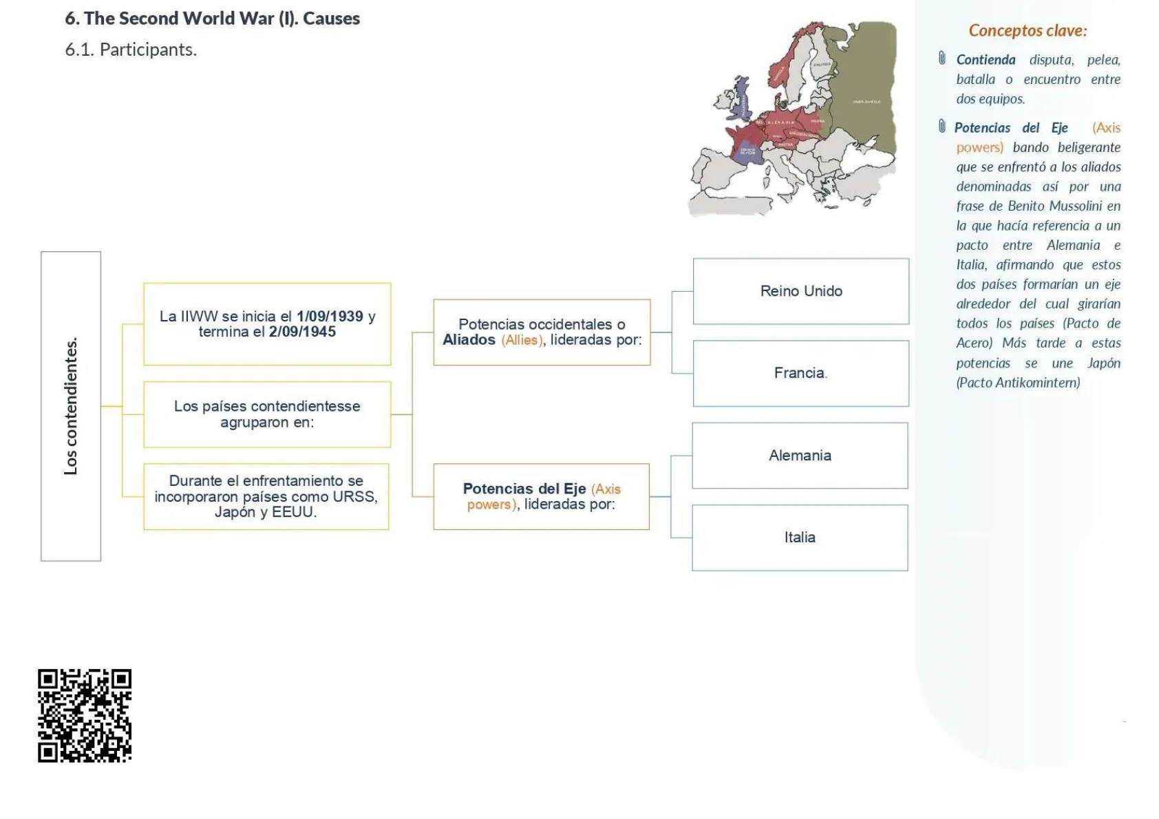 0 Contienda disputa, pelea, batalla o encuentro entre dos equipos. @ Potencias del Eje (Axis powers) bando beligerante que se enfrentó a los aliados denominadas así por una frase de Benito Mussolini en la que hacía referencia a un pacto entre Alemania e Italia, afirmando que estos dos países formarán un eje alrededor del cual girarían todos los países (Pacto de Acero) Más tarde a estas potencias se une Japón (Pacto Antikomintern)6. The Second World War (I). Causes