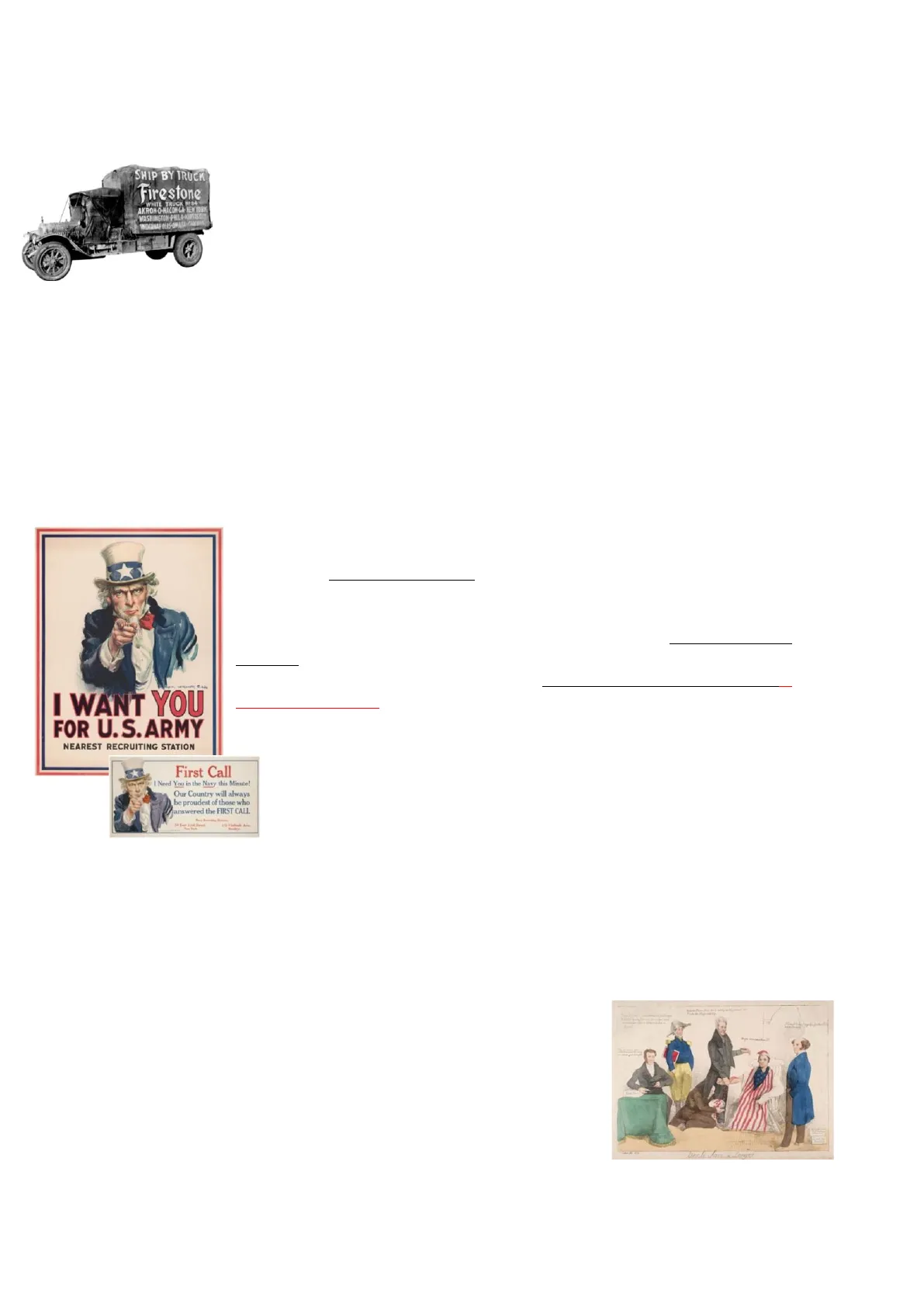 -- I WANT YOU FOR U. S. ARMY NEAREST RECRUITING STATION Con la llegada de la WWI, los gobiernos hicieron uso de la propaganda al descubrir que era un eficaz medio de persuasión. Todo ello con el principal objetivo de reclutar a soldados jóvenes y también de recaudar dinero a través de donaciones por parte de los ciudadanos para así asimilar los gastos de la guerra, estos carteles compuestos de elementos novedosos en el panorama publicitario eran popularmente conocidos como carteles de venta de bono. Entre todos los carteles, nos podemos encontrar con algunos clásicos del gremio como por ejemplo el cartel de "I want you" de J. Montgomery Flagg, el cual se convertirá en un símbolo de la propia nación americana.