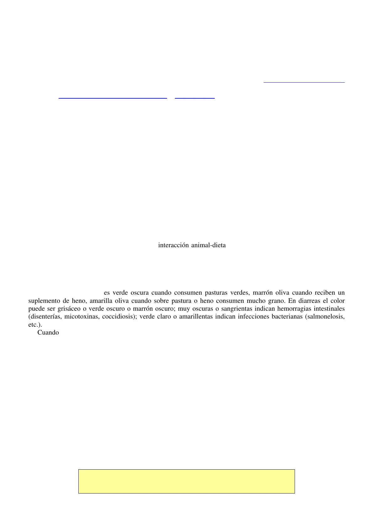 Deposiciones chirles de recría en verdeo de invierno no sazonado, con agua de bebida con 2 g/l de sulfatos. Fuerte olor. Tienen un aumento de peso diario de solo 150 g.