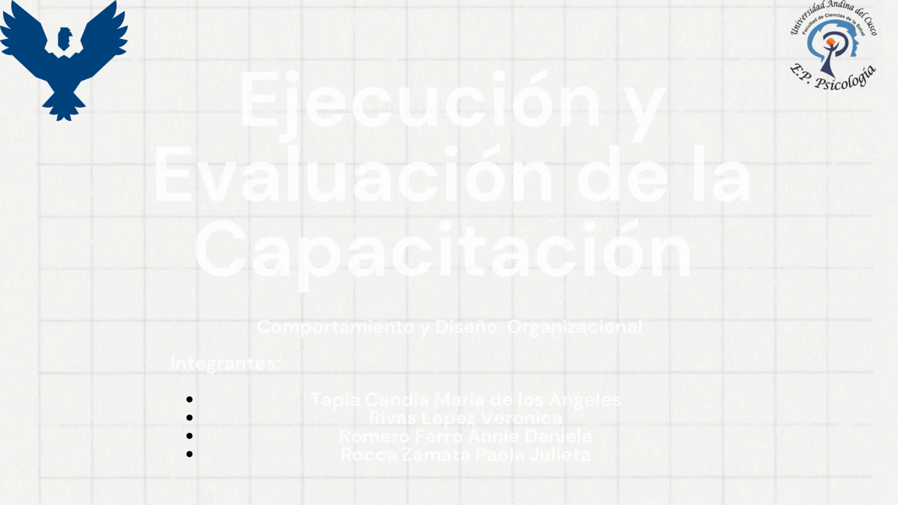 Diapositivas de Universidad Andina Del Cusco sobre Ejecución y Evaluación de la Capacitación. El Pdf explora la planificación, organización e implementación de la formación, incluyendo la identificación de necesidades y el monitoreo. Este material de Psicología para Universidad ilustra técnicas y herramientas para evaluar la eficacia de los programas de capacitación.