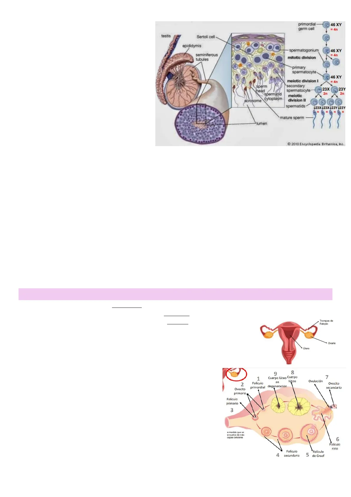 Espermatogénesis > espermatozoides Ovogénesis > ovocitos
