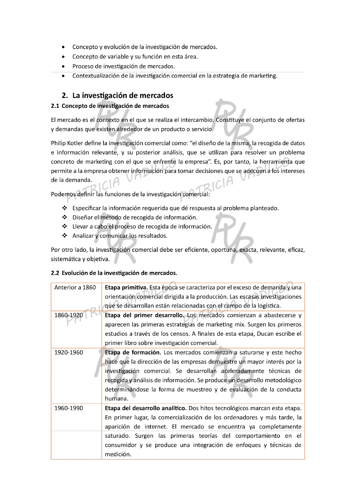 1. Introducción El presente tema pertenece al bloque de materias enfocadas al estudio de la investigación de mercados del temario oficial de la especialidad de Organización y Gestión Comercial de Secundaria. Esta área es de gran importancia dentro de la formación de los ciclos formativos de la familia de Comercio y Marketing. En todos ellos, en sus dos niveles, se tratan materias relacionadas con el marketing, especialmente en los Ciclos de Marketing y Publicidad, Comercio Internacional y Gestión de Ventas y Espacios Comerciales.