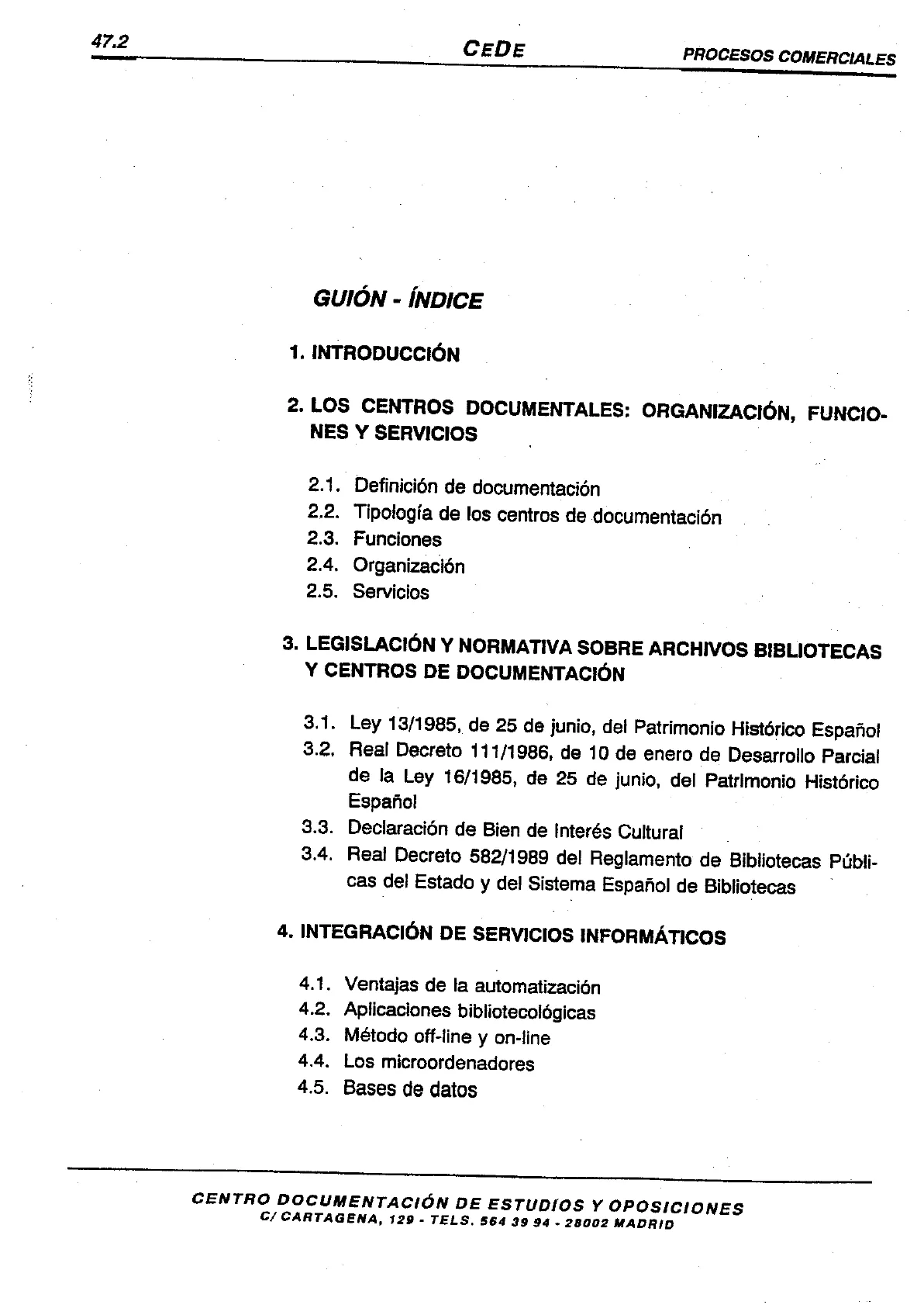 CENTRO DOCUMENTACIÓN DE ESTUDIOS Y OPOSICIONES C/ CARTAGENA, 129 - TELS. 564 39 94 - 28002 MADRID47.4
