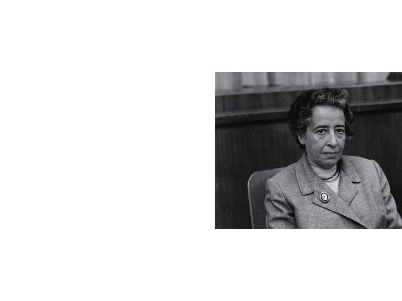 Hannah Arendt (1906-1975), alemana de origen judío, una de las pensadoras políticas más influyentes del siglo XX. Trató temas como el totalitarismo, la política y la moral. Alumna de Martin Heidegger en la Universidad de Marburgo. Escribió su tesis doctoral sobre el concepto de amor en San Agustín. Con la llegada del nazismo, fue arrestada por ayudar a documentar la persecución de judíos. Exilio en Francia y en EE.UU.Obras destacadas: