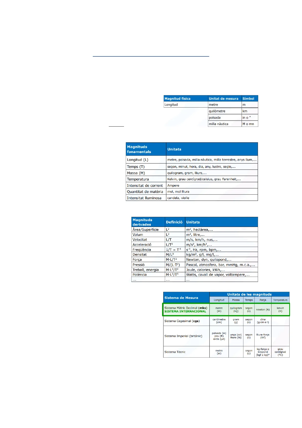 Sistema internacional de mesures. Cinematica. Velocitat i acceleració. Dinamica. Força i pes. Vectors. Moment d'una