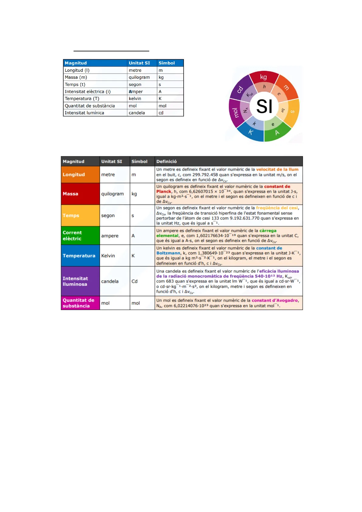 referencia. Cada unitat té un simbol