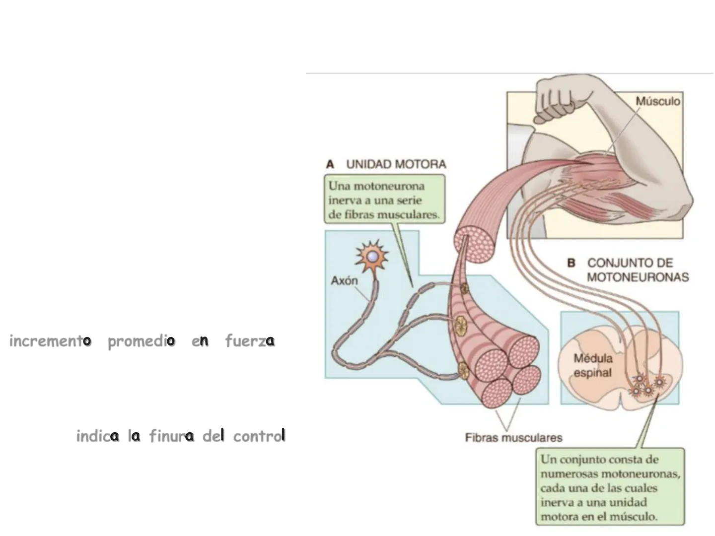 Las diferencias en el número de inervación indican diferencias en el incremento promedio en fuerza que ocurre cada vez que se activa una unidad motora en el mismo músculo.