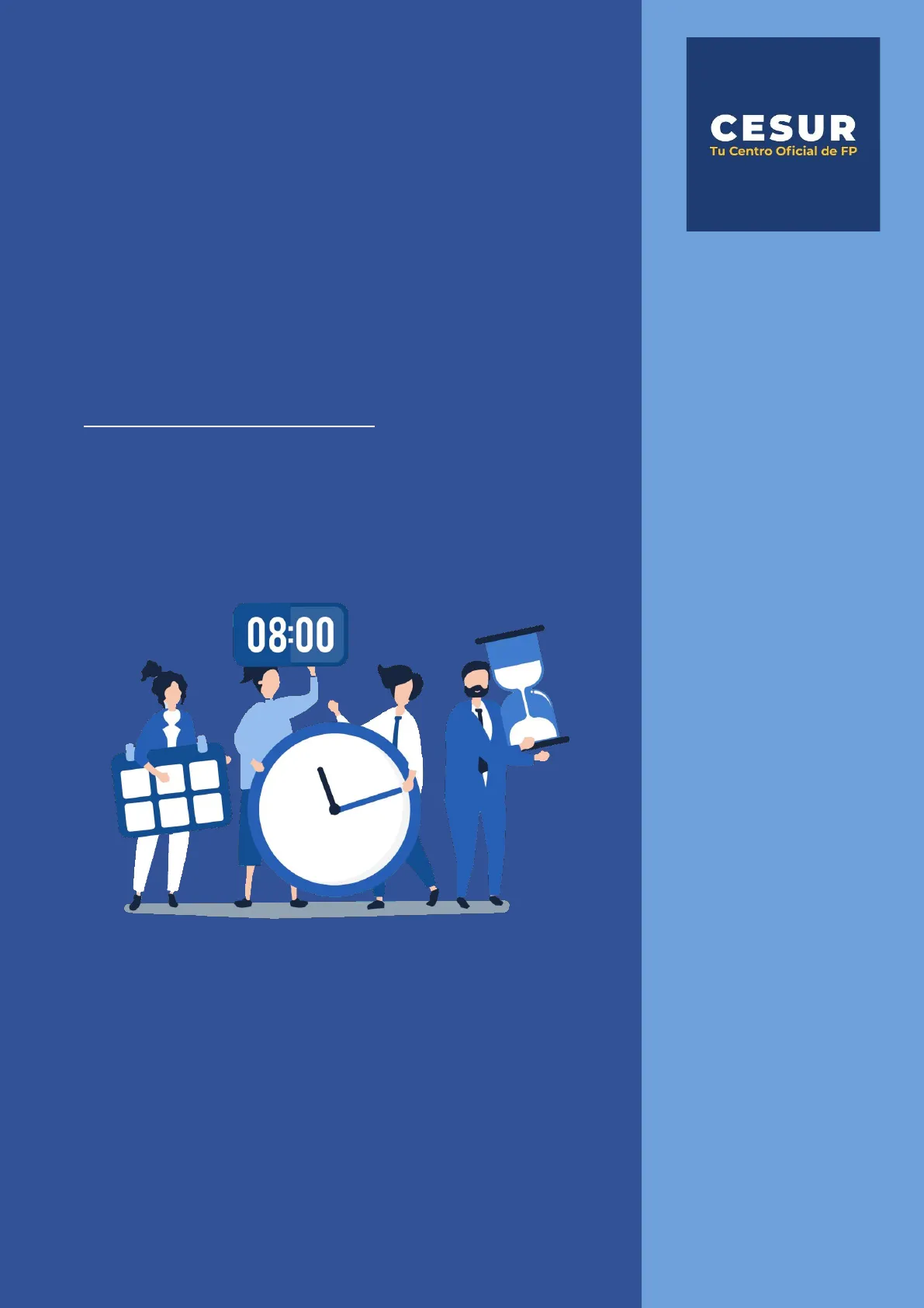 Documento de Cesur sobre La Jornada Laboral. El Pdf, de Formación profesional en Derecho, aborda la normativa de la jornada laboral, definiendo horarios, horas extraordinarias y tipos de descanso, con un índice detallado y explicaciones claras.