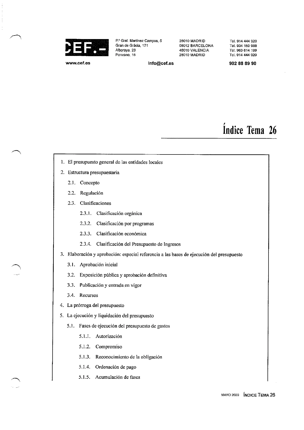 ÍNDICE TEMA 26 CEF. - OposicionesCEF .- www.cef.es P.º Gral. Martinez Campos, 5 Gran de Gràcia, 171 Alboraya, 23 Ponzano, 15 info@cef.es 28010 MADRID Tel. 914 444 920 08012 BARCELONA Tel. 934 150 988 Tel. 963 614 199 46010 VALENCIA 28010 MADRID Tel. 914 444 920 902 88 89 90