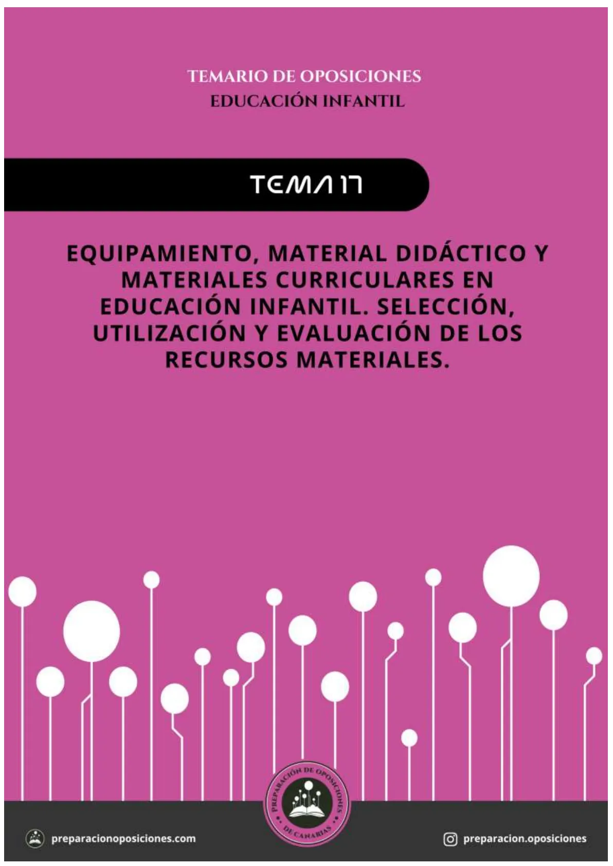 Tema 17. Equipamiento, material didáctico y materiales curriculares en Educación Infantil. Selección,