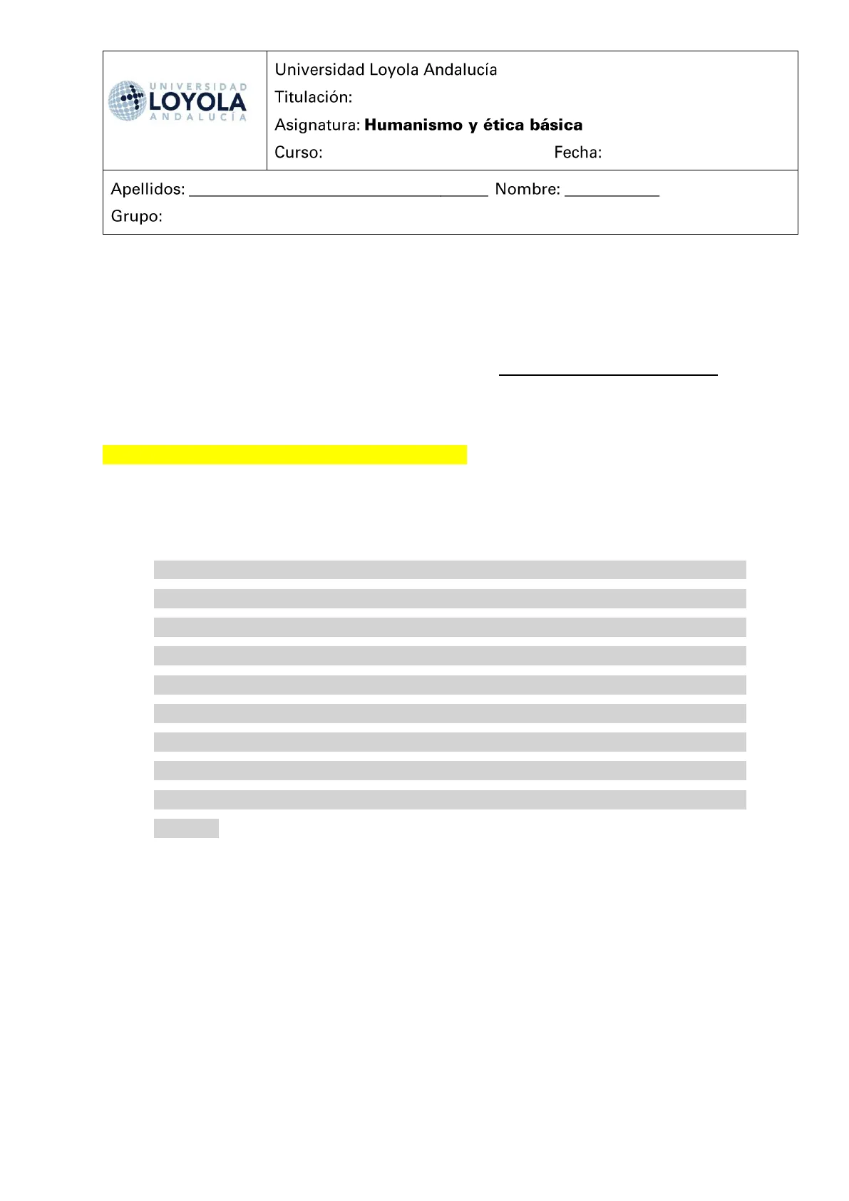 Asignatura: Humanismo y ética básica