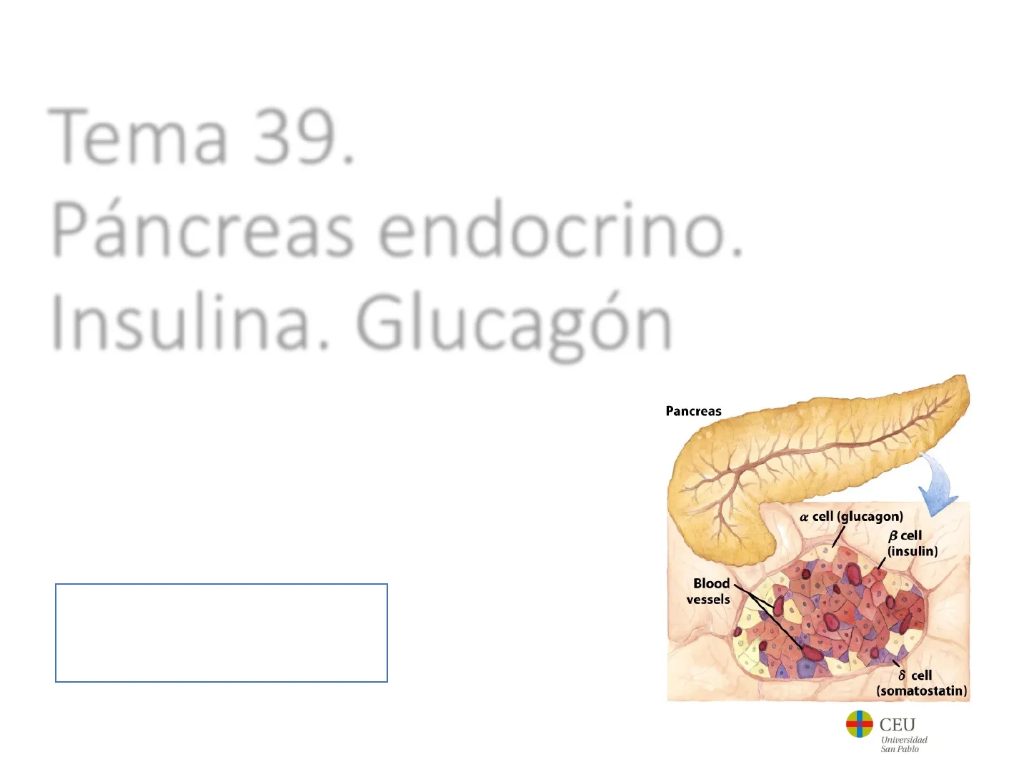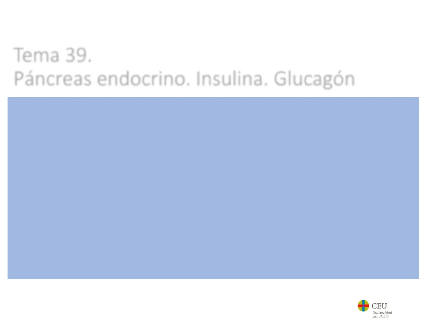 39. Páncreas endocrino. Insulina. Glucagón. CEU Universidad San Pablo 1Tema 39. Páncreas endocrino. Insulina. Glucagón