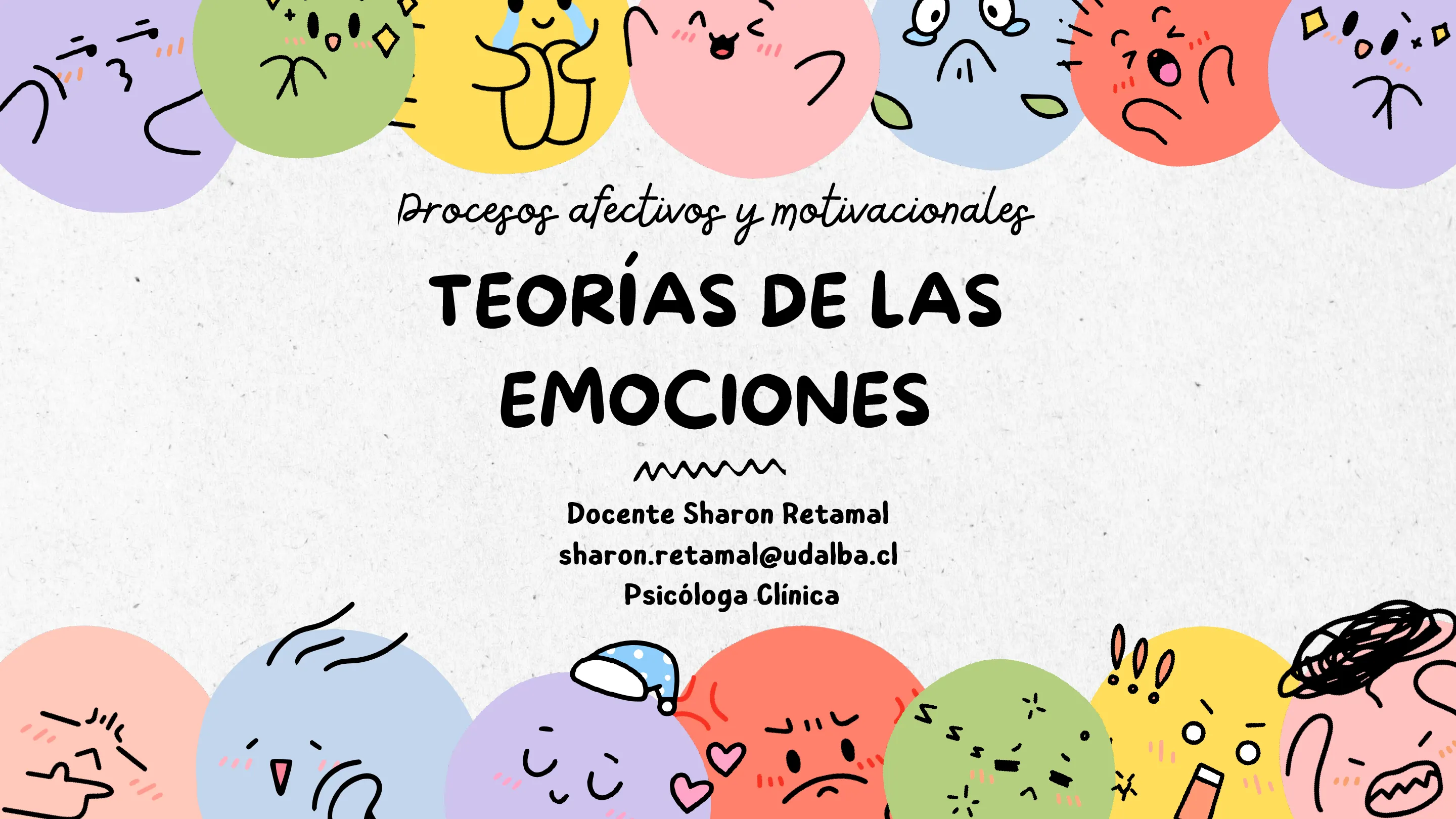 Diapositivas de Udalba.cl sobre las teorías de las emociones. El Pdf explora los procesos afectivos y motivacionales, con un enfoque en las teorías de James-Lange y Cannon-Bard, adecuado para estudiantes universitarios de Psicología.