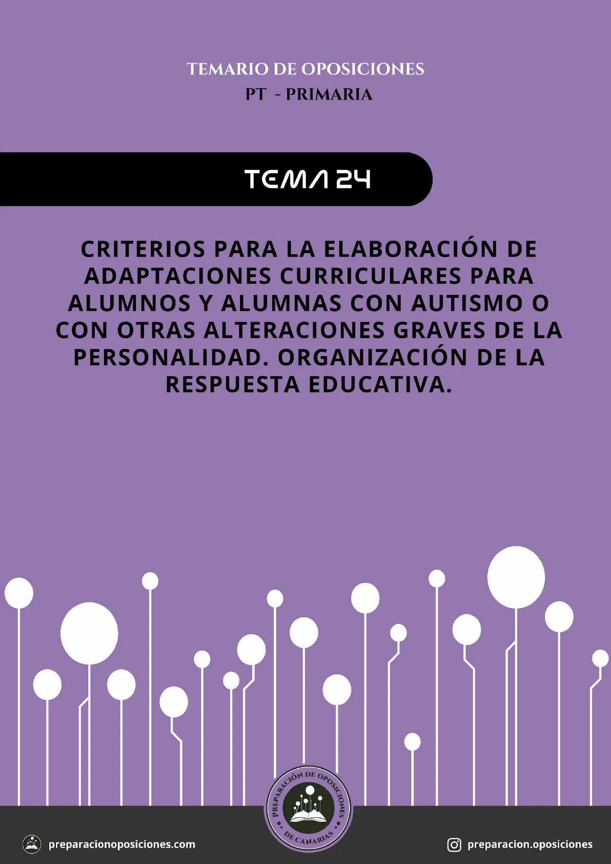 Documento de Preparación de Oposiciones de Canarias sobre Criterios para la Elaboración de Adaptaciones Curriculares para Alumnos con Autismo o con Otras Alteraciones Graves de la Personalidad. El Pdf, enfocado en Psicología para Oposiciones, detalla la organización de la respuesta educativa, incluyendo estrategias de comunicación y desarrollo socioemocional, con bibliografía y un estilo discursivo bien organizado.