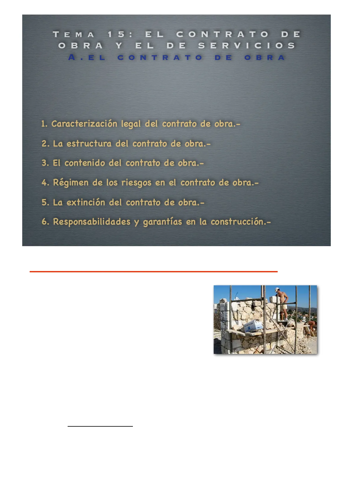 3. EL CONTENIDO DEL CONTRATO DE OBRA Obligaciones de las partes.