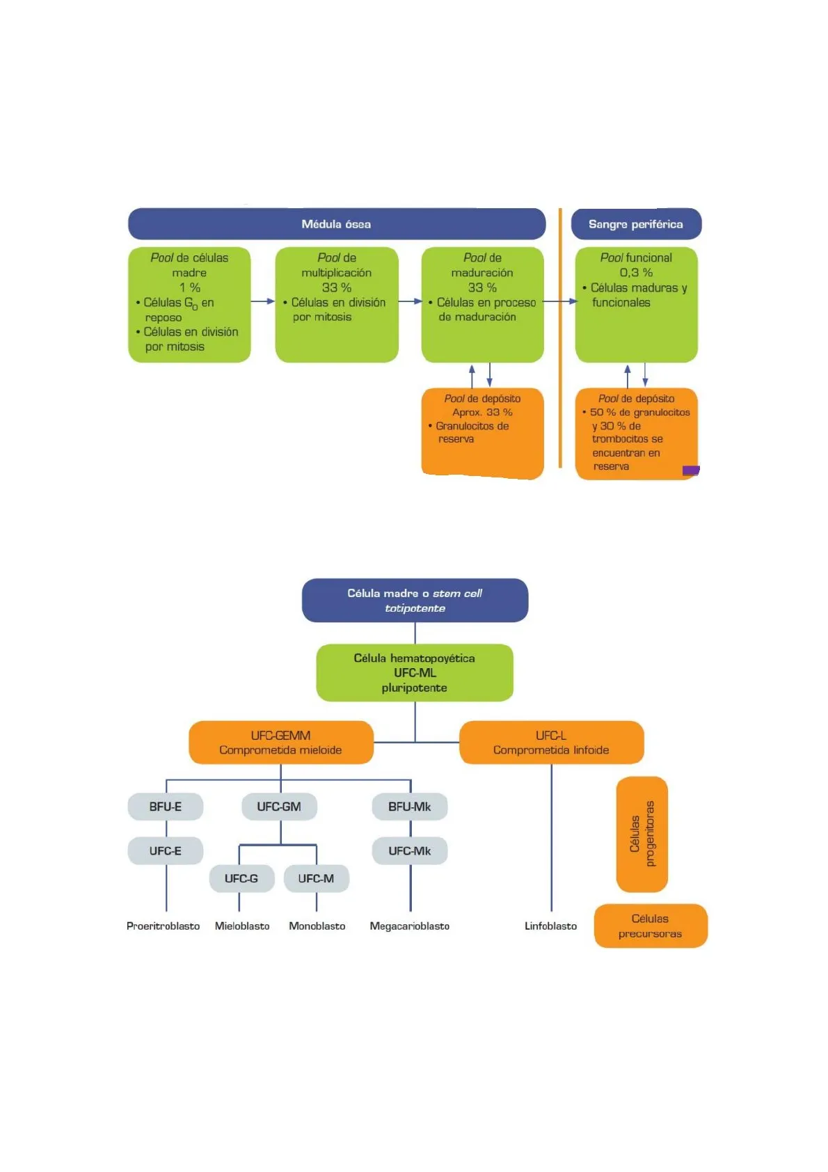 Existen varios compartimientos o "pools celulares". Se nombran en función del estado evolutivo.