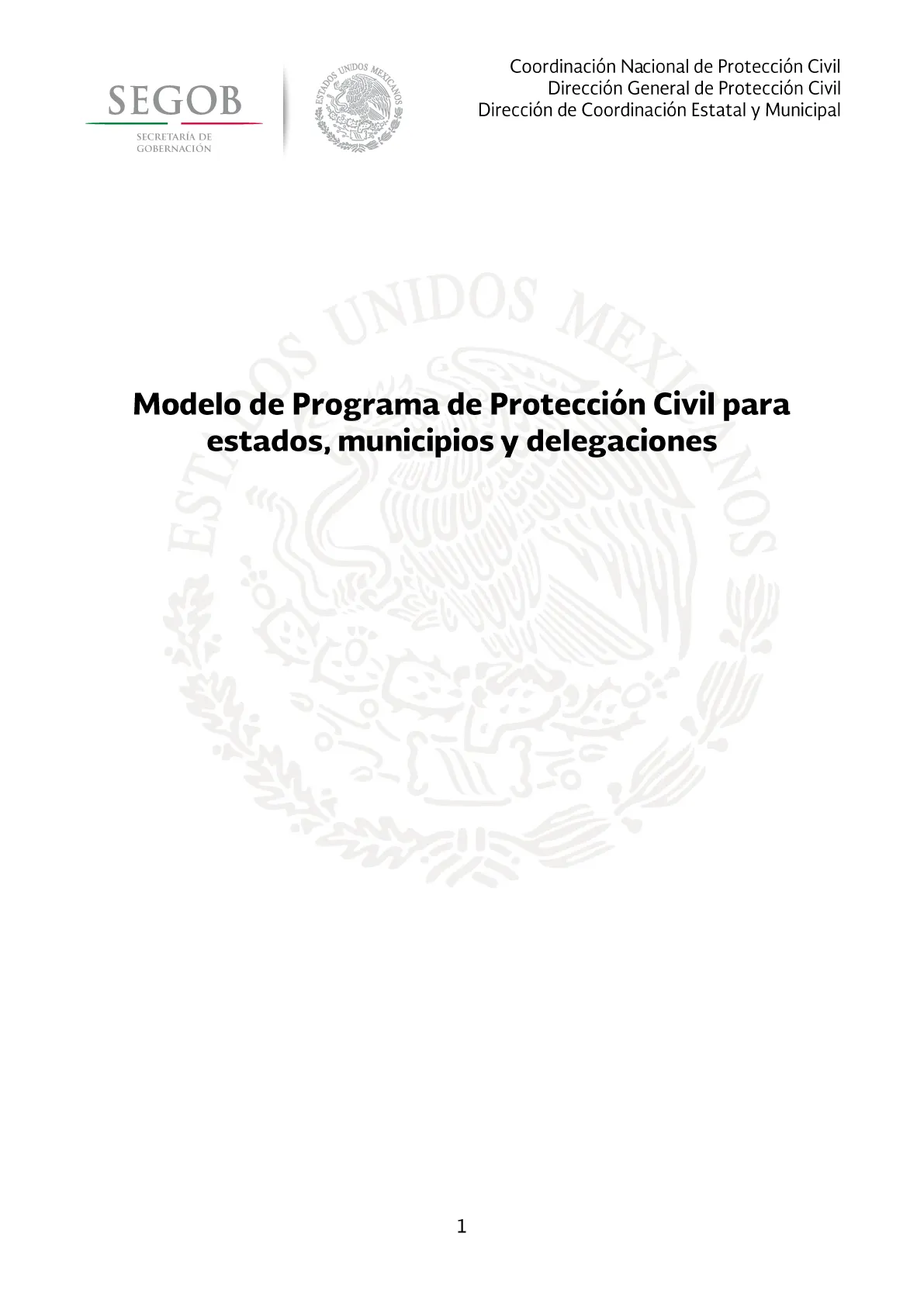 EST NOS 1SEGOB SECRETARÍA DE GOBERNACIÓN TADOS OS UNIDOS MEX CANOS Coordinación Nacional de Protección Civil Dirección General de Protección Civil Dirección de Coordinación Estatal y Municipal