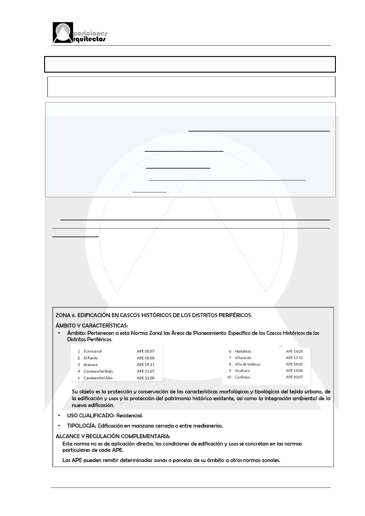 - Ámbito: Pertenecen a esta Norma Zonal las Áreas de Planeamiento Específico de los Cascos Históricos de los