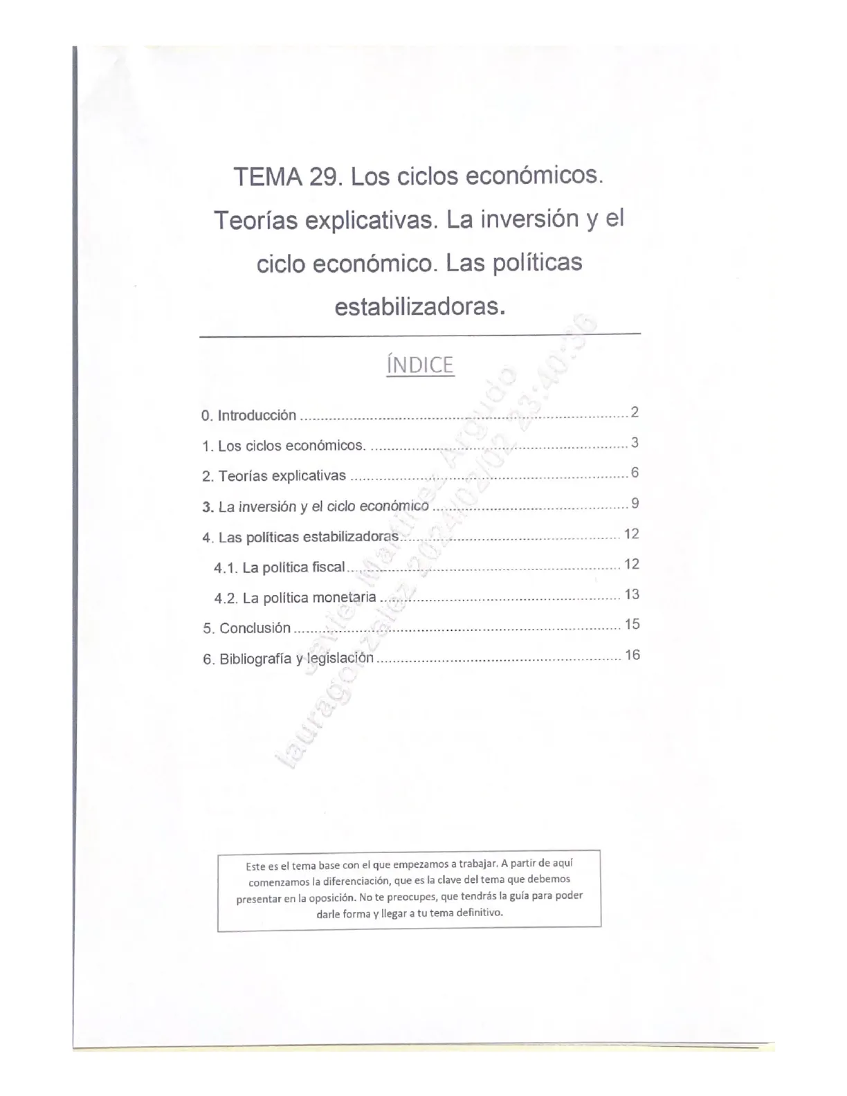 Este es el tema base con el que empezamos a trabajar. A partir de aquí comenzamos la diferenciación, que es la clave del tema que debemos presentar en la oposición. No te preocupes, que tendrás la guía para poder darle forma y llegar a tu tema definitivo.