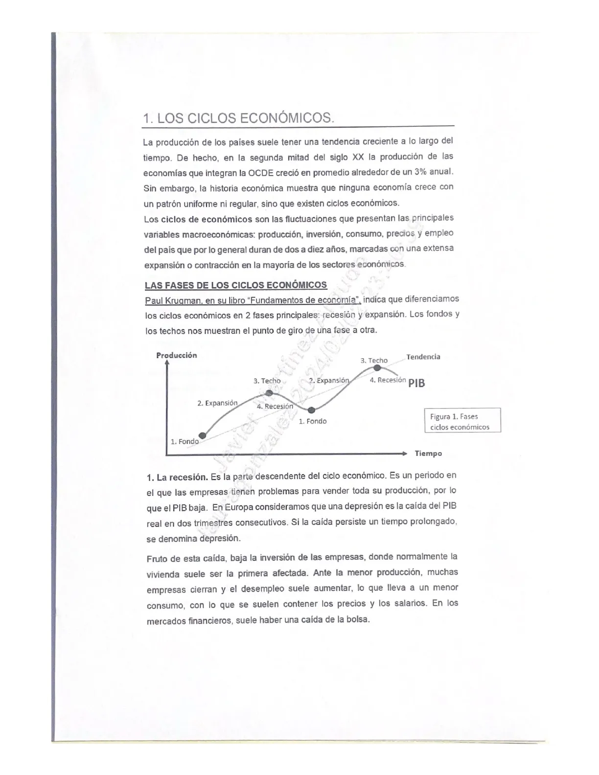 Producción tineő 2024/028 Tendencia 3. Techo 3. Techo 2. Expansión 4. Recesión PIB 2. Expansión 4. Recesión 1. Fondo Figura 1. Fases ciclos económicos 1. Fondo nalež Tiempo