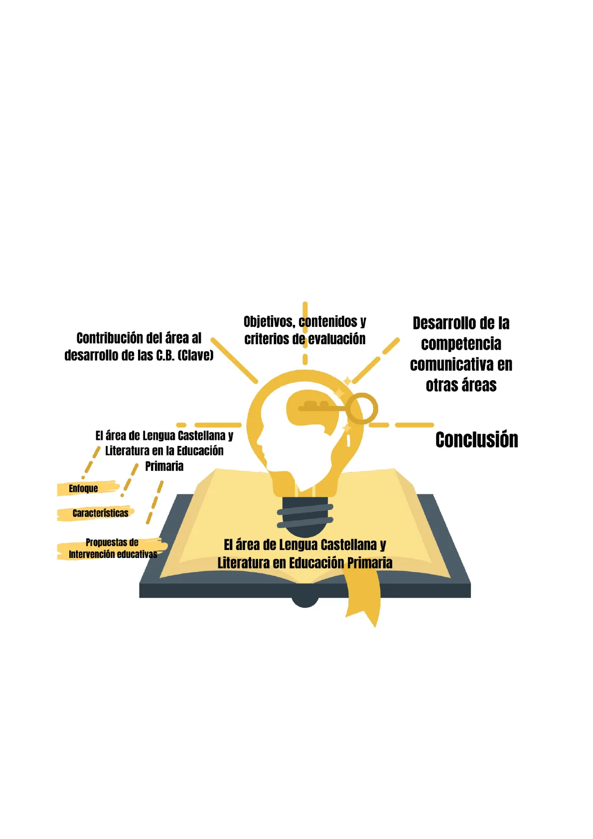 Objetivos, contenidos y criterios de evaluación Contribución del área al desarrollo de las C.B. (Clave) Desarrollo de la competencia comunicativa en otras áreas I El área de Lengua Castellana y Literatura en la Educación Primaria Conclusión Enfoque Características Propuestas de Intervención educativas El área de Lengua Castellana y Literatura en Educación Primaria 1ÍNDICE