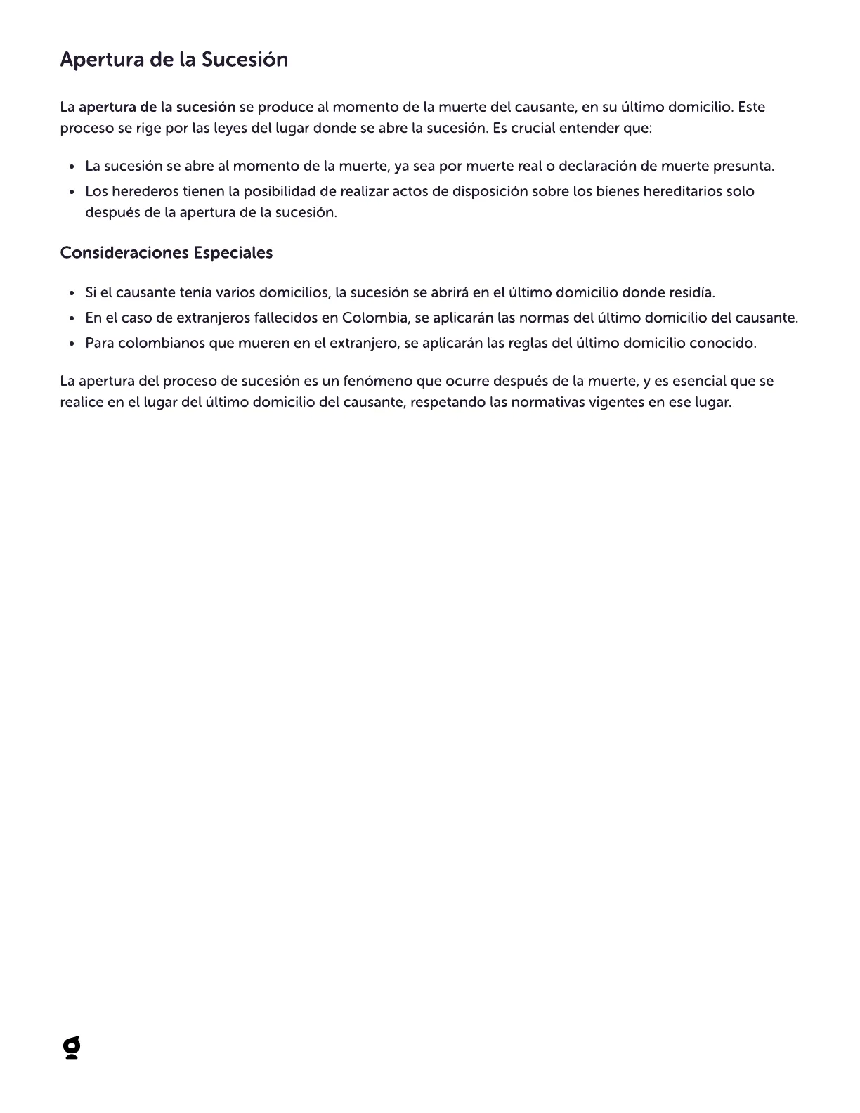 La apertura de la sucesión se produce al momento de la muerte del causante, en su último domicilio. Este proceso se rige por las leyes del lugar donde se abre la sucesión. Es crucial entender que: