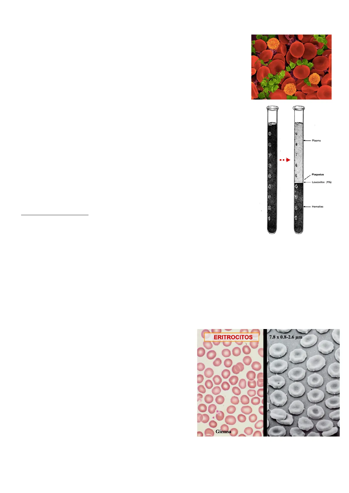 ERITROCITOS 7.8 x 0.8-2.6 um Giemsa 10 10% 9 9 Plasma 8 8 7 7 6 6 5 5 Leucocitos (1%) 3 3 2 2 Hematies 1 Plaquetas oSi están en un medio hipertónico, pierden agua, observándose hematíes con pequeñas protuberancias o digitaciones, siendo llamados hematíes crenados (encogidos).