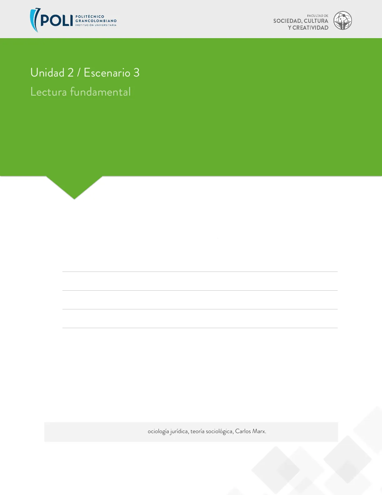 POLI POLITÉCNICO GRANCOLOMBIANO INSTITUCIÓN UNIVERSITARIA FACULTAD DE SOCIEDAD, CULTURA Y CREATIVIDAD Unidad 2 / Escenario 3 Lectura fundamental Teorías sociológicas clásicas: Marx