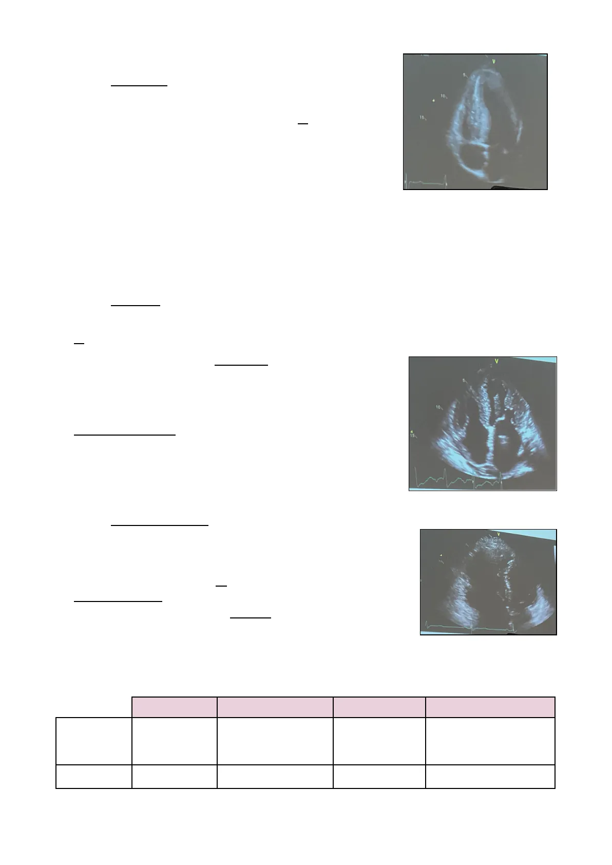 La fracción de eyección (FE) suele estar reducida, la cavidad del VI en diástole suele estar dilatada, el grosor de las paredes suele ser normal y las aurículas están dilatadas (si hay disfunción sistólica, suele haber disfunción diastólica _asociada). Si encontramos alguna valvulopatía suele ser de tipo funcional mitral o tricuspídea.