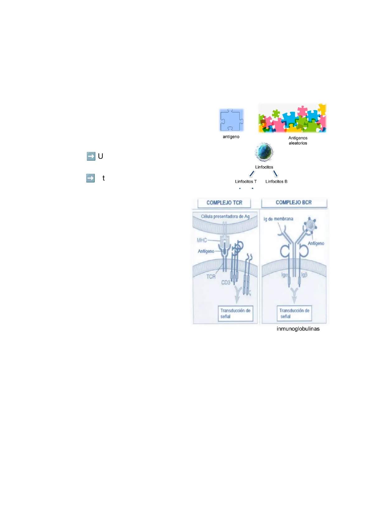 COMPLEJO TCR COMPLEJO BCR Célula presentadora de Ag Ig de membrana MHC- Antígeno Antígeno alp TCR CD3'T Transducción de señal Transducción de señal inmunoglobulinas