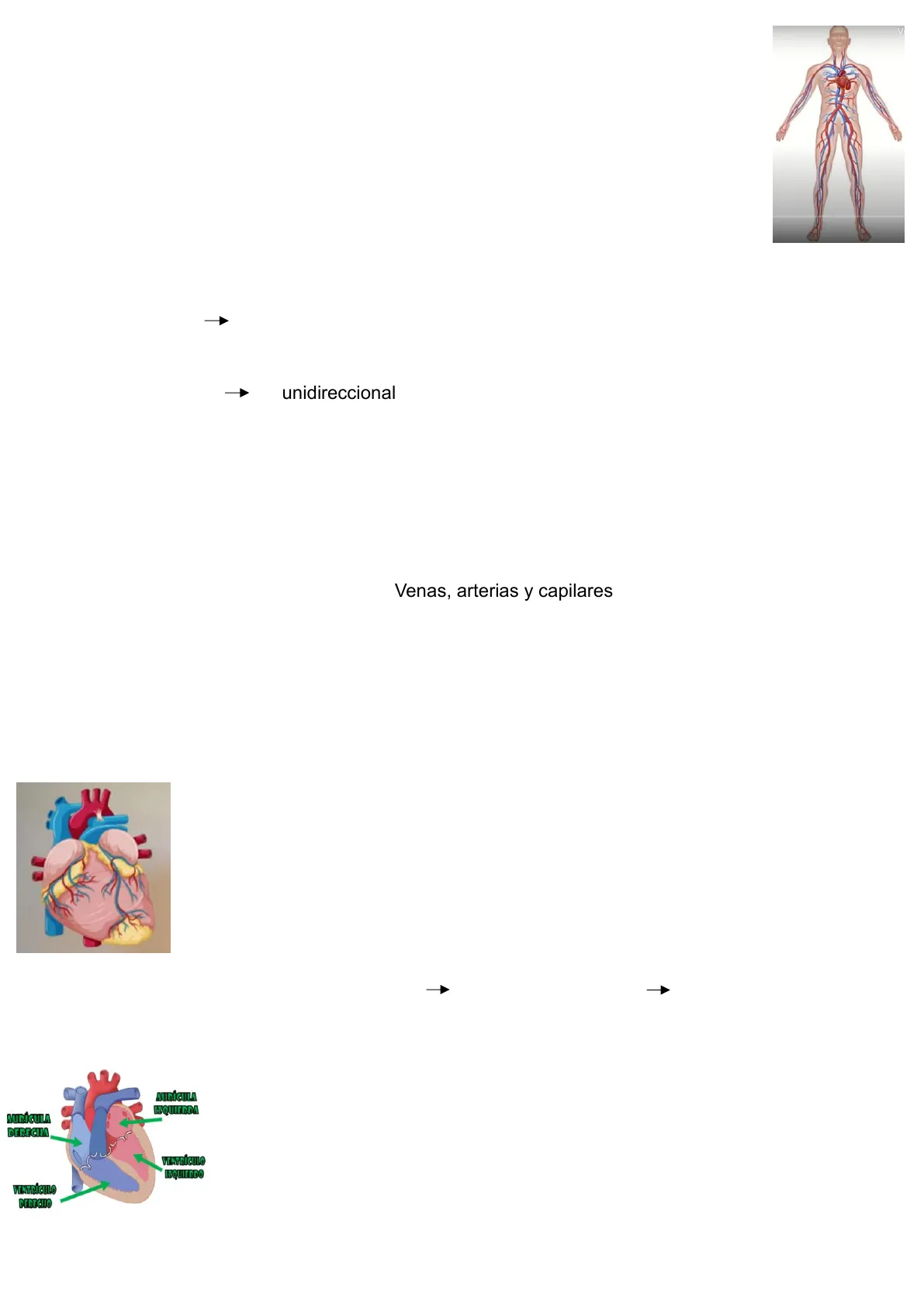 (IMP. Le interesa cara al exam. * ) Esta compuesto por el corazón y por la red que transporte de la sangre (las arterias, venas y vasos capilares que se extiende por todo el cuerpo). Comienza a latir mucho antes del nacimiento y funciona sin parar hasta la muerte. La aorta -+ Transporta de manera incesante la sangre con los nutrientes a los diversos tejidos a todas las partes del cuerpo, para mantener la actividad vital y recoge los residuos del metabolismo celular. Circulación-> Es unidireccional, las Arterias transportan sangre del corazón rica en O y las venas sangre pobre en O al corazón. Este proceso es distinto en la circulación pulmonar.