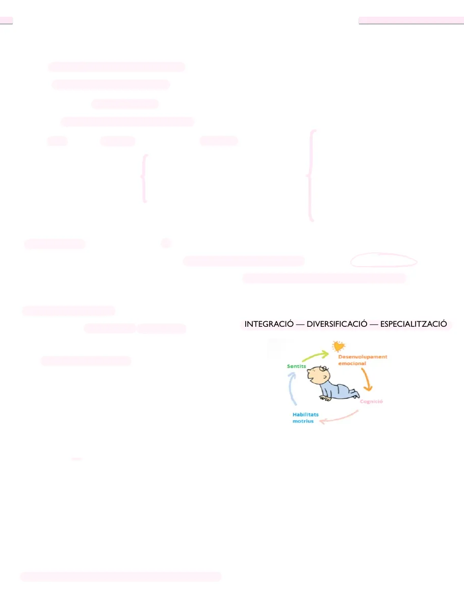 2.I. Maduració (procés lligat a l'edat): · Caledari biologic: marca les fites a assolir, + determinista al principi de la vida. . Els processos de maduració es produeixen per processos neurologics i hormonals controlats per i'hipotalem. · La maduració determina que aquestes capacitats es donin però la manifestació dependrà dels factors ambientals. 2.2. El desenvolupament és gradual. · Lent, continuo i progressiu. Però hi ha etapes successives (a vegades + com als 2 anys, etapa on es produeix + rapidament). · Basat en: adquirir noves habilitats i perfeccionar les existents. INTEGRACIÓ - DIVERSIFICACIÓNLITZACIÓ