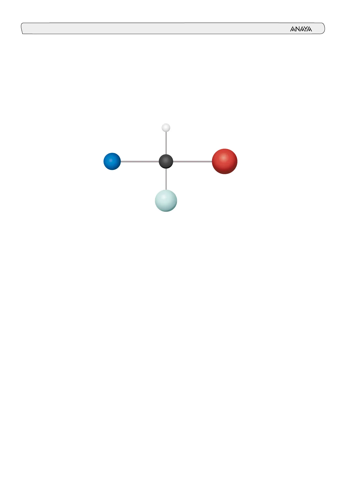Todos los aminoácidos, excepto la glicina, tienen isomería espacial o estereoiso- mería, debido a que su carbono a es asimétrico. Presentan enantiómeros D (grupo amino a la derecha) y L (grupo amino a la iz- quierda). Los aminoácidos proteicos son L. Los aminoácidos tienen actividad óptica: isómeros ópticos dextrógiros y levógiros.