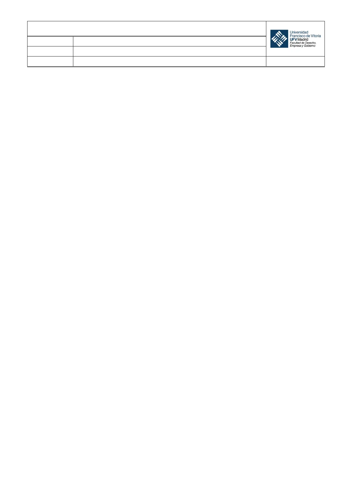 Universidad Francisco de Vitoria UFV Madrid Facultad de Derecho, Empresa y Gobierno Página 1