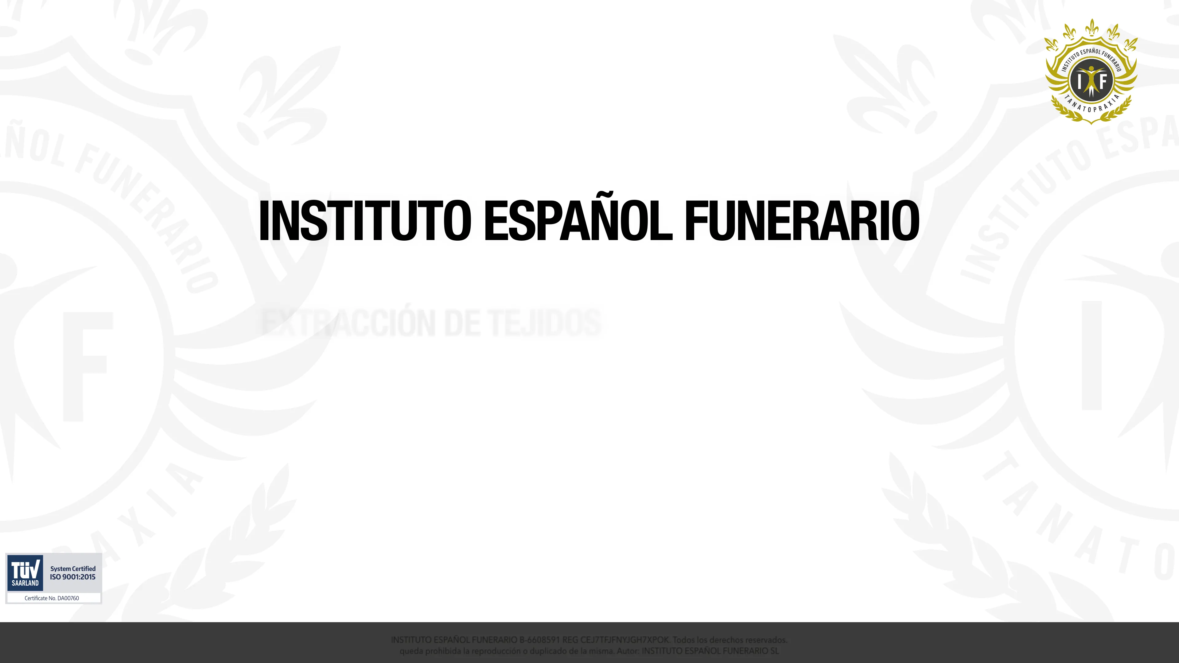 Diapositivas del Instituto Español Funerario sobre extracción de tejidos. El Pdf detalla las técnicas de extracción de tejidos de cadáveres, las zonas de muestreo según el estado de conservación y las recomendaciones para el embalaje, útil para la formación profesional.