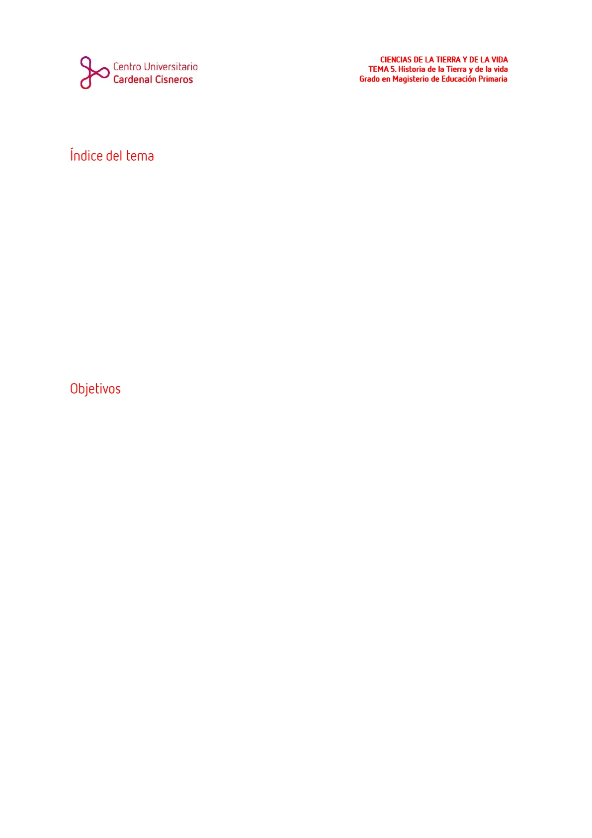 3Centro Universitario Cardenal Cisneros CIENCIAS DE LA TIERRA Y DE LA VIDA TEMA 5. Historia de la Tierra y de la vida Grado en Magisterio de Educación Primaria