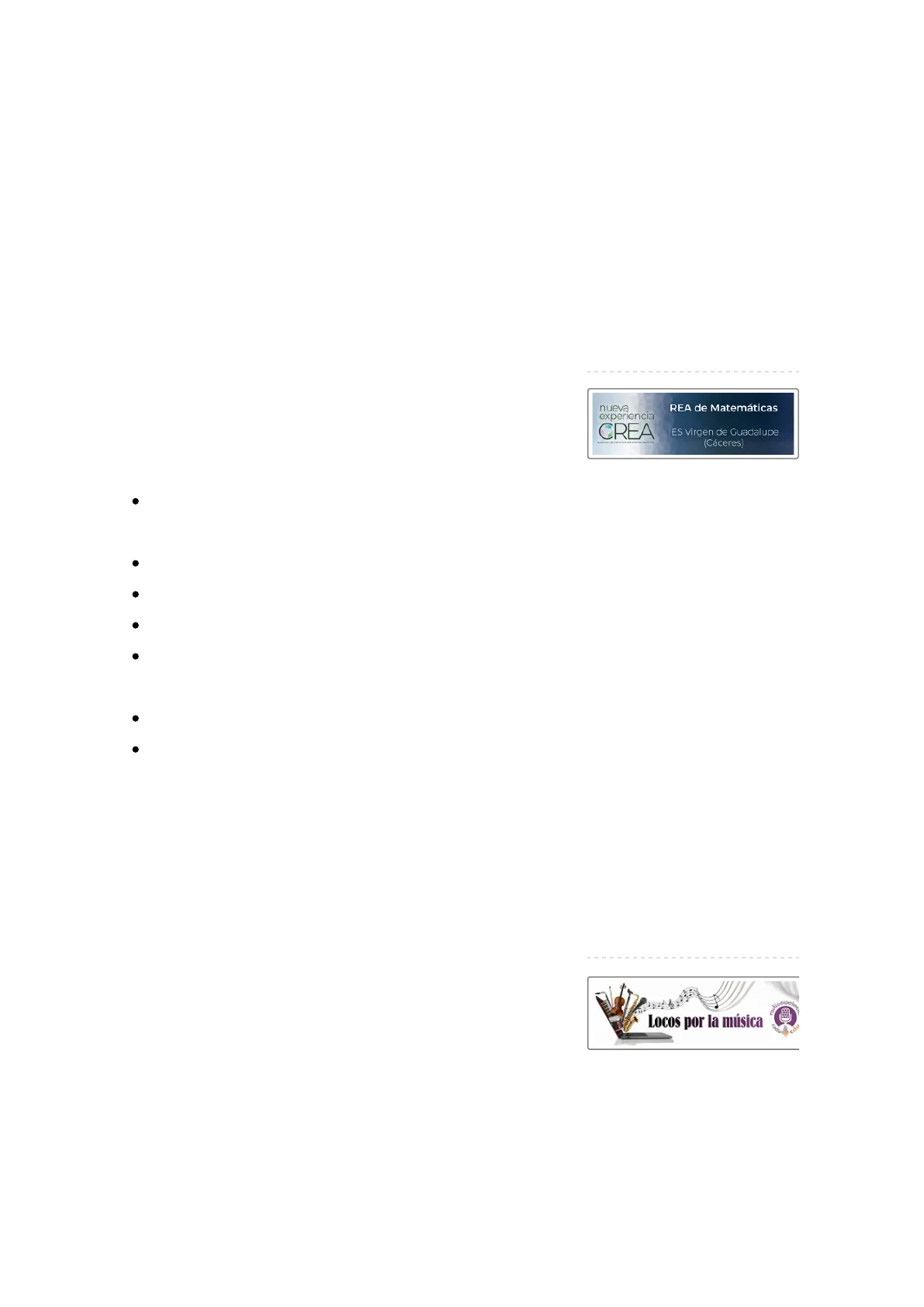 nueva experiencia CREA REA de Matemáticas IES Virgen de Guadalupe (Cáceres) Nov 07, 2023 Experiencias CREA. REA de matemáticas. IES Virgen de Guadalupe by Ana Belén Borrego González Soy Ana Belén Borrego, profesora de Matemáticas del IES Virgen de Guadalupe de Cáceres y este curso imparto clases de Matemáticas a un grupo de 1º ESO. El grupo está formado formado por 16 alumnos y alumnas, donde hay algunos con medidas específicas de atención a la diversidad, destacando alumnado ... Más información