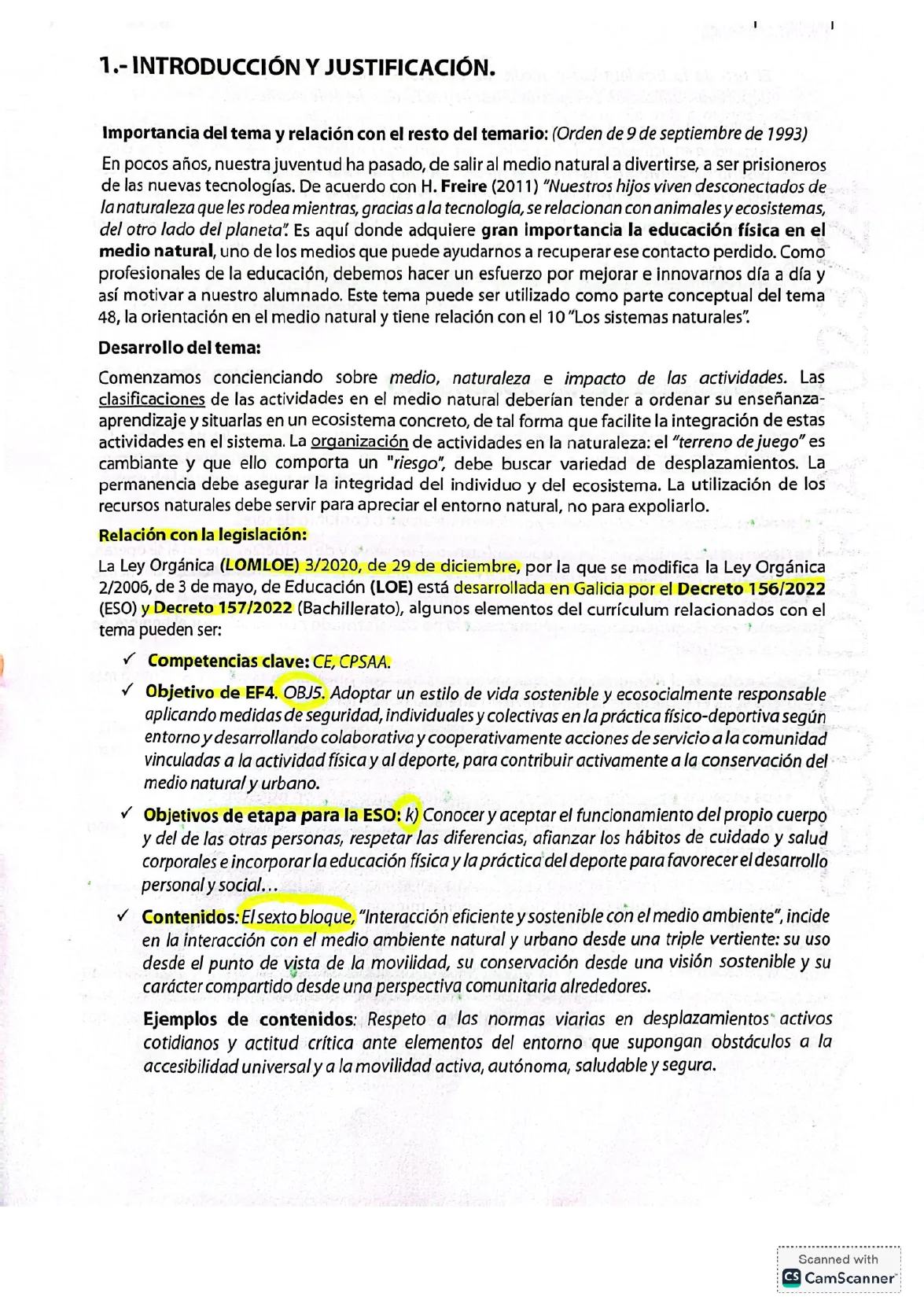 En pocos años, nuestra juventud ha pasado, de salir al medio natural a divertirse, a ser prisioneros de las nuevas tecnologías. De acuerdo con H. Freire (2011) "Nuestros hijos viven desconectados de la naturaleza que les rodea mientras, gracias a la tecnología, se relacionan con animales y ecosistemas, del otro lado del planeta". Es aquí donde adquiere gran importancia la educación física en el medio natural, uno de los medios que puede ayudarnos a recuperar ese contacto perdido. Como profesionales de la educación, debemos hacer un esfuerzo por mejorar e innovarnos día a día y así motivar a nuestro alumnado. Este tema puede ser utilizado como parte conceptual del tema 48, la orientación en el medio natural y tiene relación con el 10 "Los sistemas naturales".