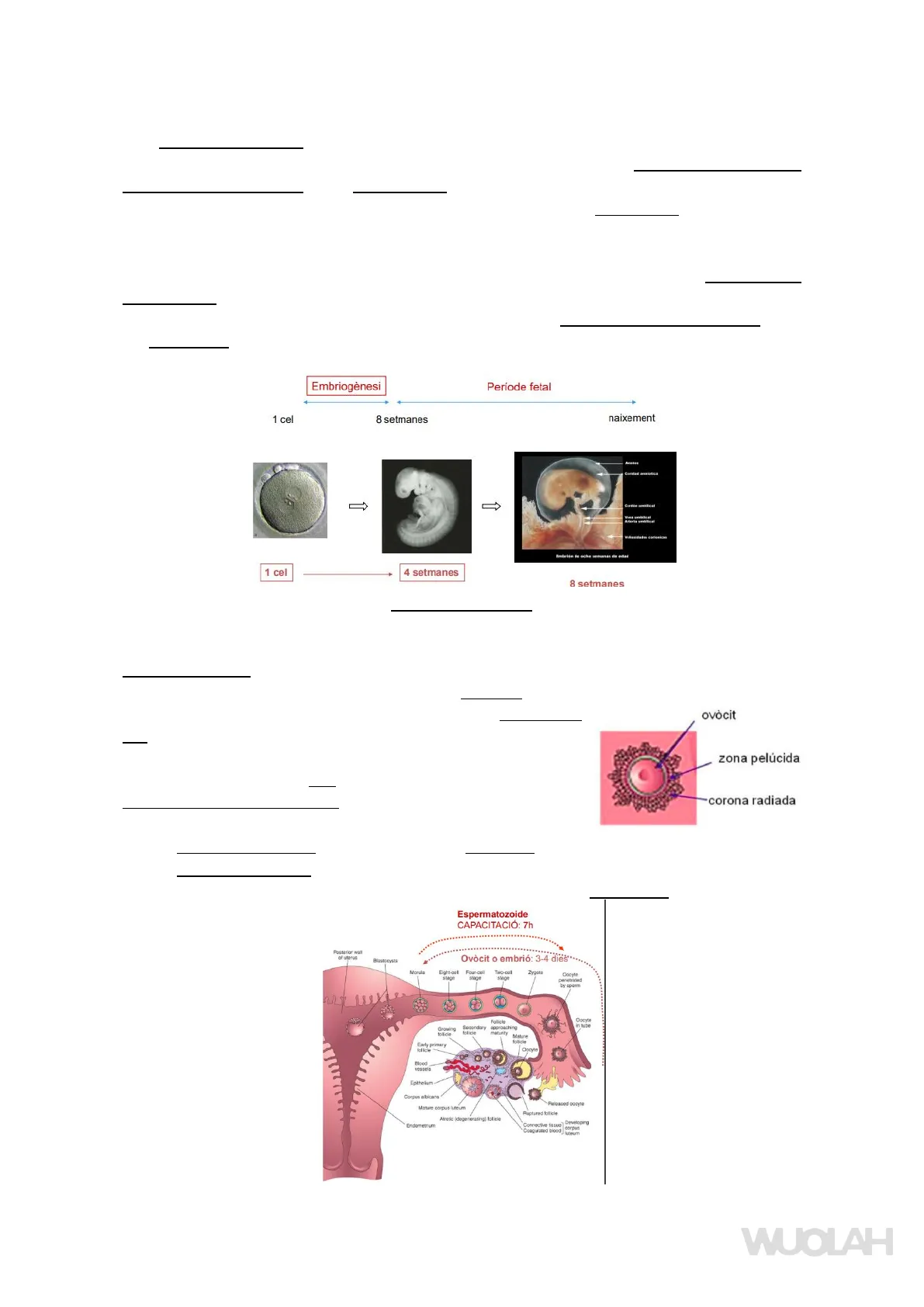 Espermatozoide CAPACITACIÓ: 7h Posterior wal of uterus Ovocit o embrió: 3-4 dies" Morula Eight-cell stage Four-cell stage Two-cell stao Zygote Oocyte penetrated by sperm Follicle Secondary approaching follicle Docyte in tube Growing follicle maturity Mature follicle Early primary follicle Oocyle Blood vessels Epithelium Corpus albicans Released oocyte Mature corpus luteum Ruptured follicle Atretic (degenerating) follicle Endometrium Connective tissue] Developing corpus Coagulated blood Jluteum WUOLAH Reservados todos los derechos. No se permite la explotación económica ni la transformación de esta obra. Queda permitida la impresión en su totalidad. Blastocysts Emelwien de ocho semanas de edad