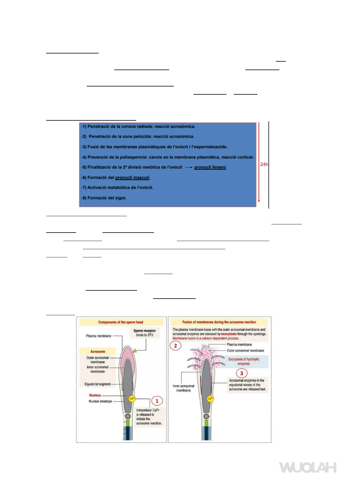 WUOLAH Reservados todos los derechos. No se permite la explotación económica ni la transformación de esta obra. Queda permitida la impresión en su totalidad. 2 2 Ovum (secondary oocyte) Hyaluronidase is released,Fecundació