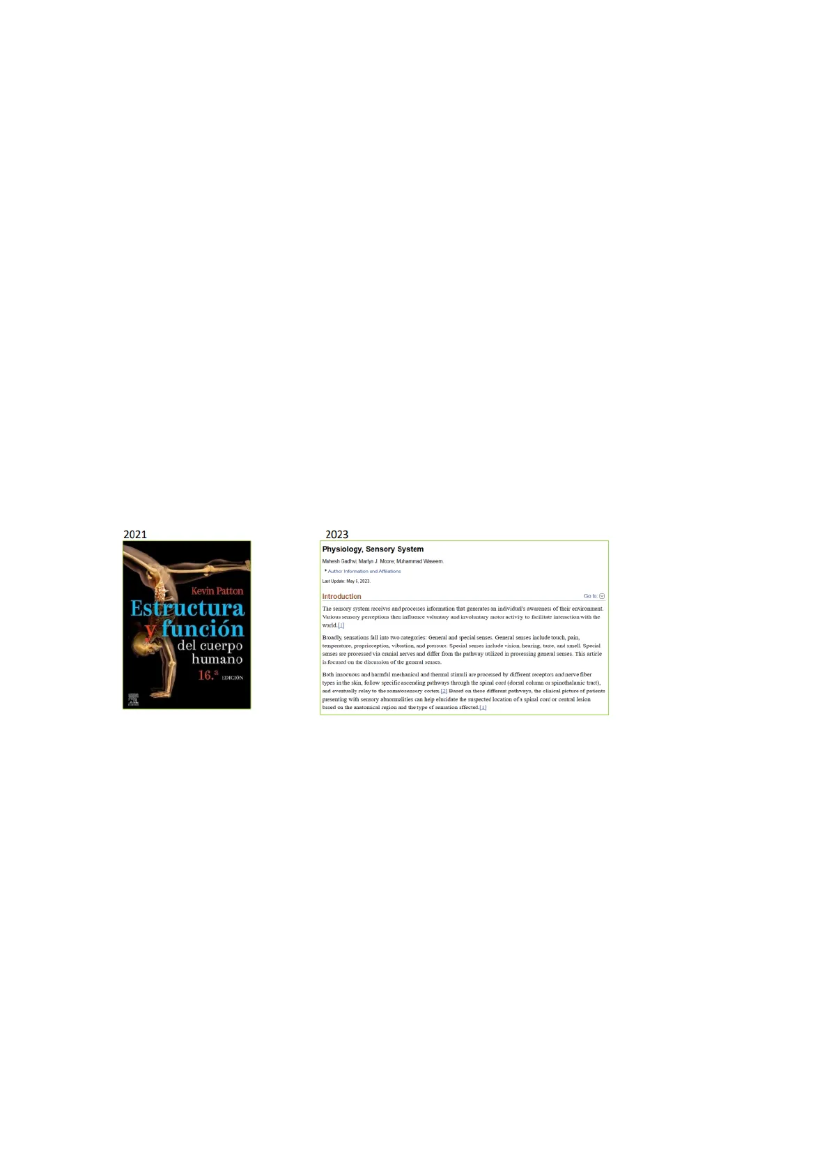 2021 2023 Physiology, Sensory System Mahesh Gadhvi; Martyn J. Moore; Muhammad Waseem. * Author Information and Affiliations Last Update: May 6, 2023. Introduction Go to: The sensory system receives and processes information that generates an individual's awareness of their environment. Various sensory perceptions then influence voluntary and involuntary motor activity to facilitate interaction with the world.[1] Broadly, sensations fall into two categories: General and special senses. General senses include touch, pain, temperature, proprioception, vibration, and pressure. Special senses include vision, hearing, taste, and smell. Special senses are processed via cranial nerves and differ from the pathway utilized in processing general senses. This article is focused on the discussion of the general senses. 16.ª EDICIÓN Both innocuous and harmful mechanical and thermal stimuli are processed by different receptors and nerve fiber types in the skin, follow specific ascending pathways through the spinal cord (dorsal column or spinothalamic tract), and eventually relay to the somatosensory cortex.[2] Based on these different pathways, the clinical picture of patients presenting with sensory abnormalities can help elucidate the suspected location of a spinal cord or central lesion based on the anatomical region and the type of sensation affected.[1]