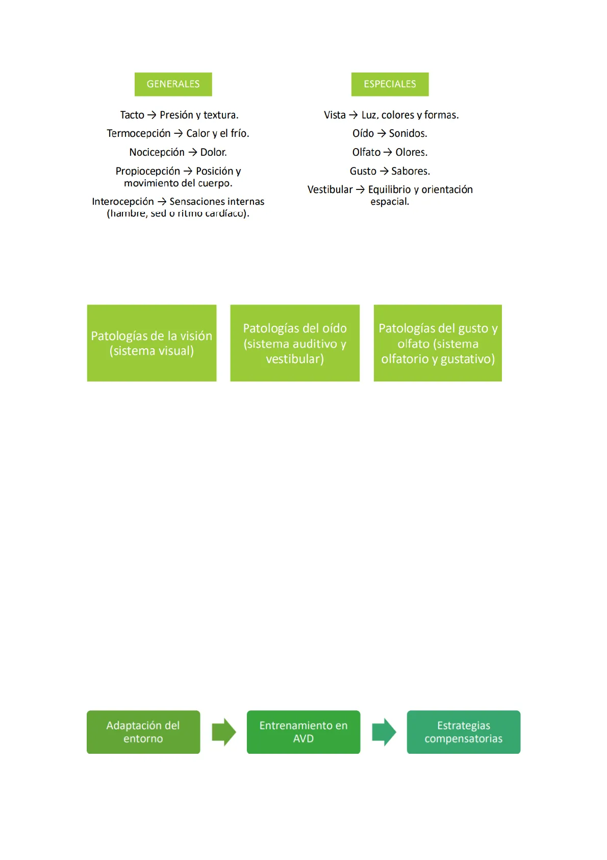 Patologías de la visión (sistema visual) Patologías del oído (sistema auditivo y vestibular) Patologías del gusto y olfato (sistema olfatorio y gustativo)