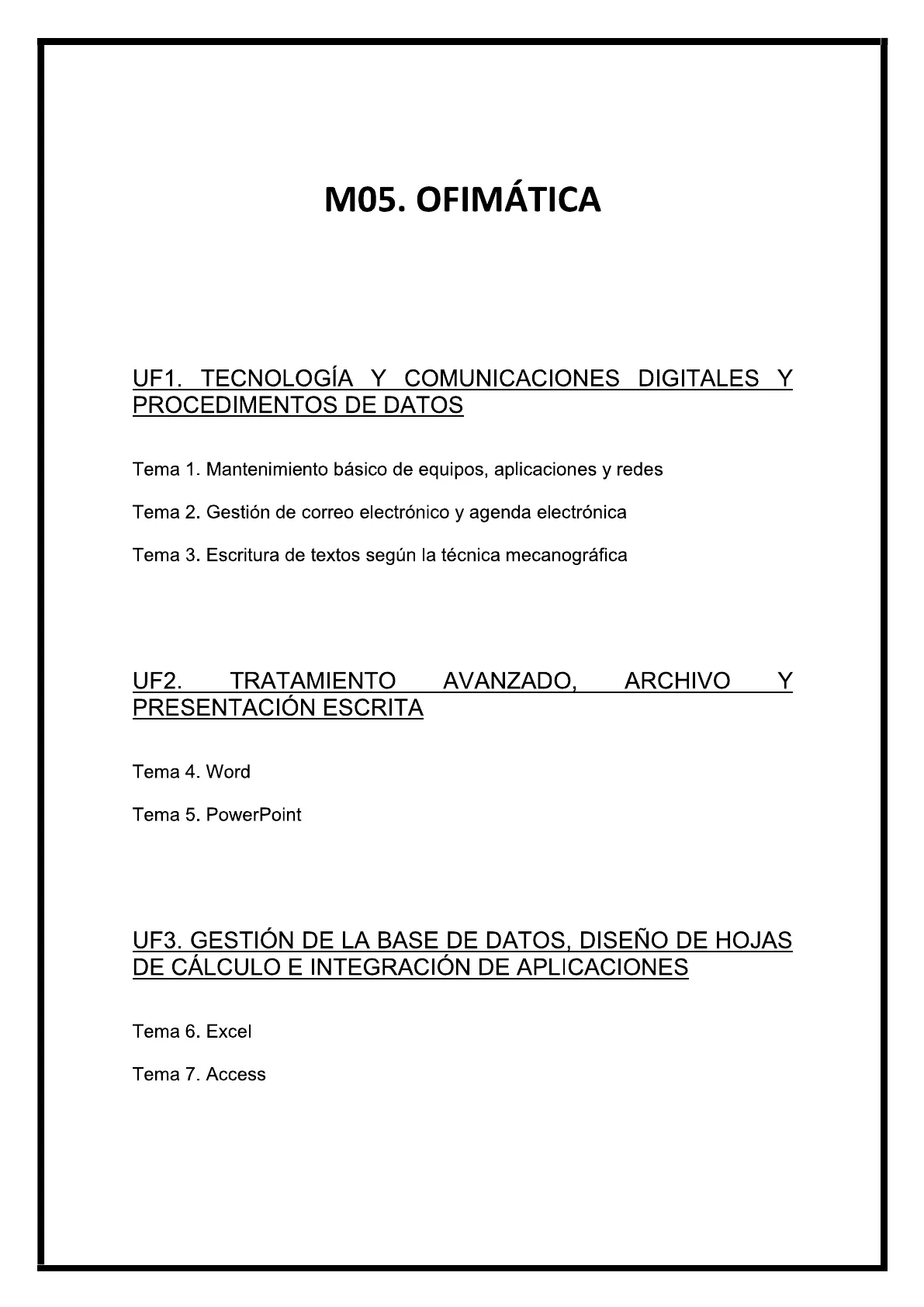 UF1. TECNOLOGÍA Y COMUNICACIONES DIGITALES Y PROCEDIMENTOS DE DATOS