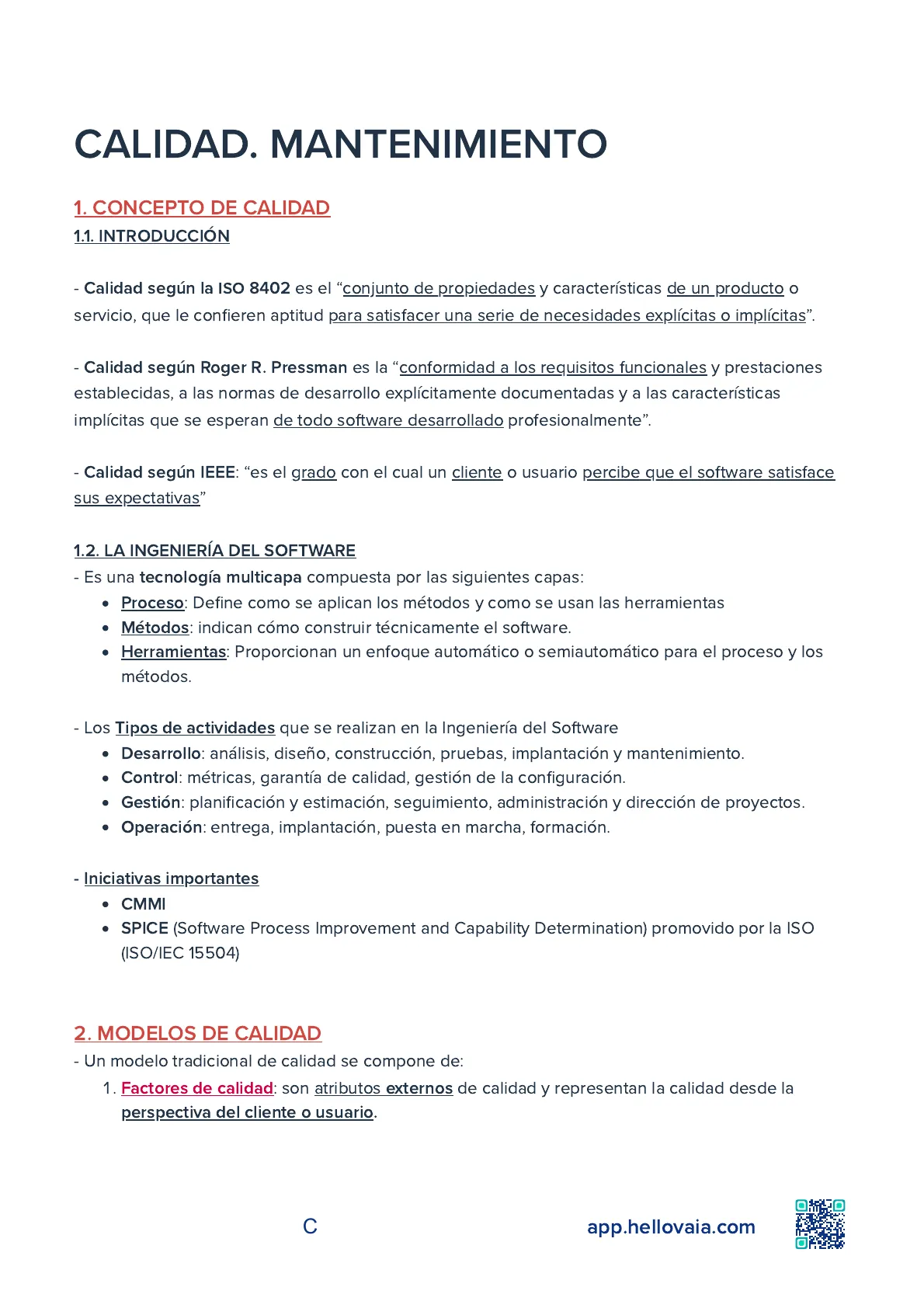 EFQM (European Foundation for Quality Management) La idea es similar a la de McCall pero los elementos se llaman: Crea los mejores apuntes con app.hellovaia.com