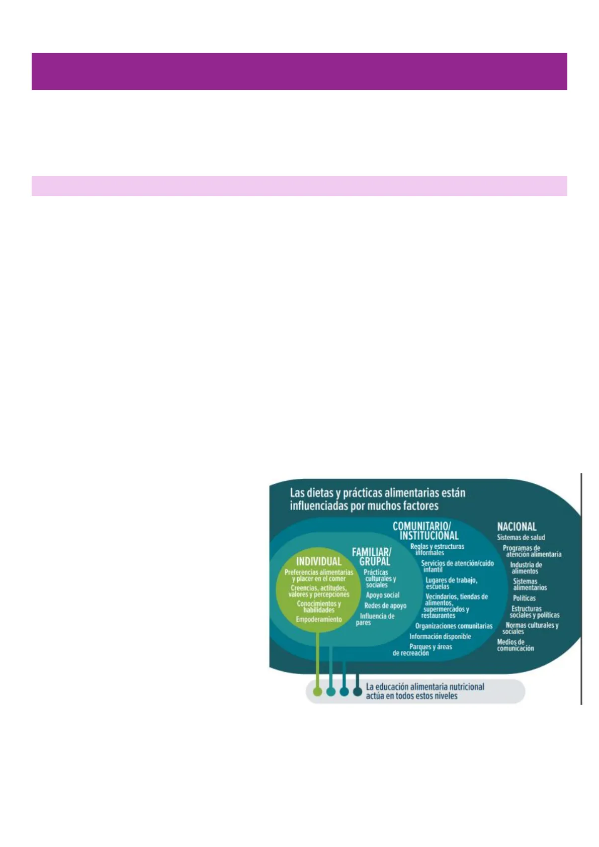 CONCEPTOS CLAVE · ALIMENTACIÓN: es el proceso por el que el individuo selecciona los alimentos que conforman su dieta ( proceso por el cual el individuo elige los alimentos que van a formar su dieta) · ALIMENTARSE: Consiste en ingerir algo comestible de forma voluntaria; lo introducimos en la boca, lo mas- ticamos, lo tragamos y, con ello, conseguimos diferentes sensaciones gustativas. (proceso voluntario, por de- cisión propia lo ingiero, es el momento en el que yo decido) · NUTRIRSE: Acción involuntaria de nuestro organismo que consiste en escoger los nutrientes necesarios de los alimentos ingeridos para poder seguir viviendo y hacer su actividad diaria. (proceso involuntario, pasa justo después de mi decisión de tragar el alimento, a partir de ahí, todo el proceso es involuntario) El objetivo del Dietista-Nutricionista será enseñar a la población a alimentarse de forma correcta para que se nutra de forma óptima para su adecuado desarrollo, según su estado fisiológico y sus circunstancias.