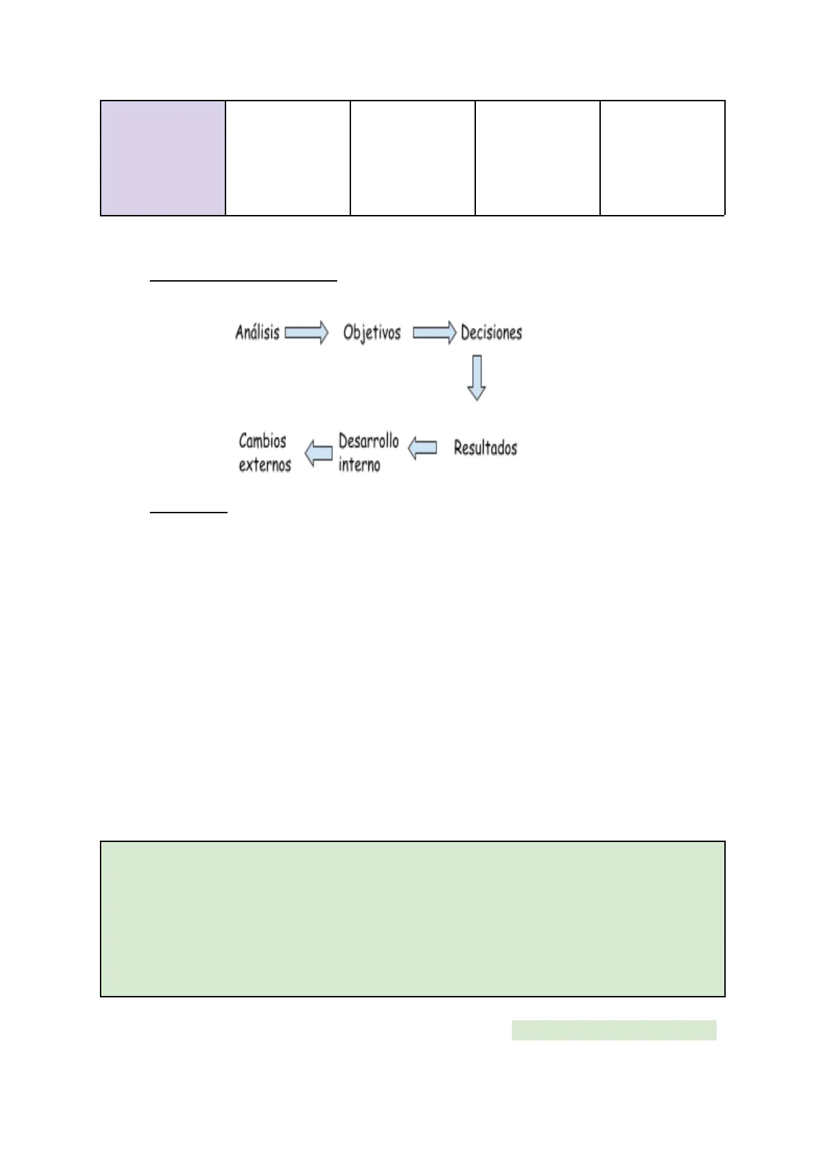 Análisis - Objetivos Decisiones Cambios Desarrollo interno Resultados externos