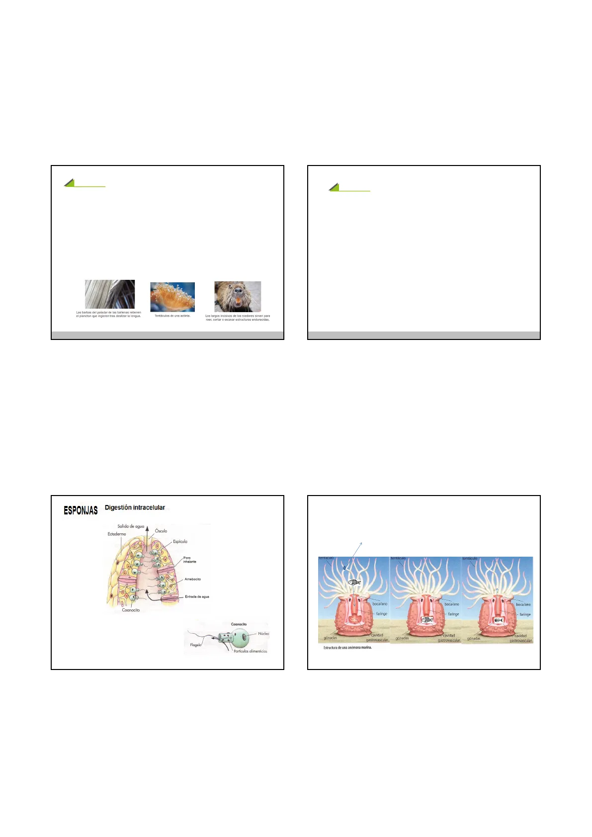 Las barbas del paladar de las ballenas retienen el plancton que ingieren tras deslizar la lengua. Tentáculos de una actinia. Los largos incisivos de los roedores sirven para roer, cortar o excavar estructuras endurecidas.