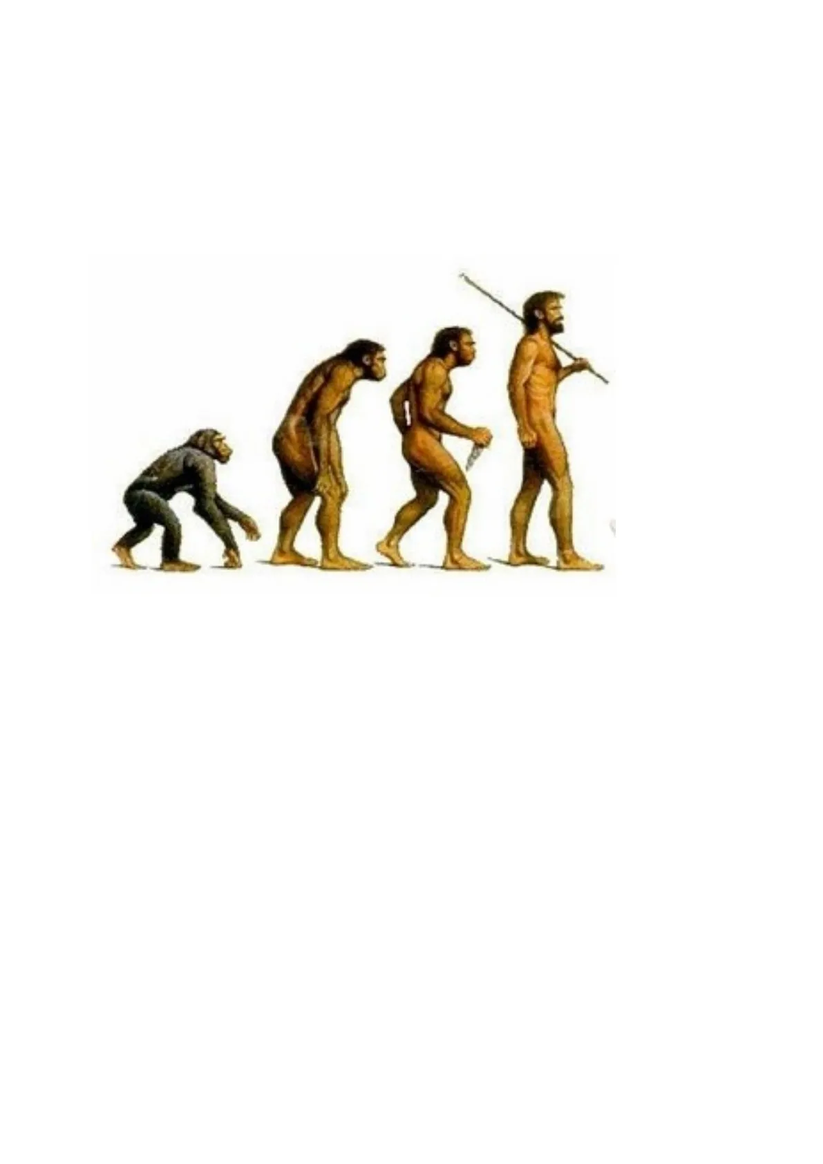 Pero volvamos de nuevo al ser humano. De lo dicho hasta ahora se sigue que las rasgos físicos del ser humano, tanto si son específicos como si no lo son, han de ser fruto de la evolución. Con rasgos físicos no específicos nos referimos a todas aquellas que compartimos con otros animales como, por ejemplo, los ojos o la nariz. Por el contrario, los rasgos físicos específicos serán todas aquellas que pertenecen única y exclusivamente al ser humano. Estas resultan evidentes si, sobre todo, nos comparamos con los grandes simios (chimpancés, gorilas, bonobos y orangutanes), es decir, con aquellas especies de animales que se encuentran evolutívamente más cercanas a nosotros.