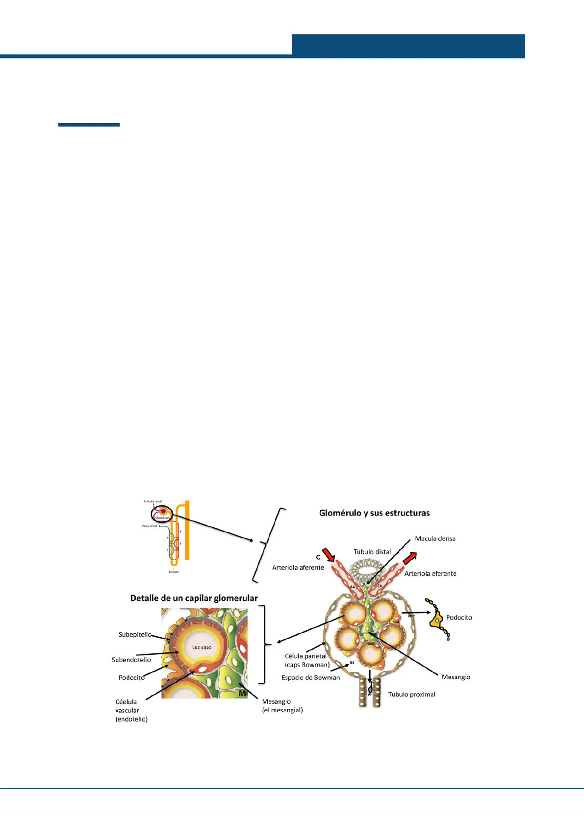 Arteria renal Glomerulo y sus estructuras Glomérulo Vena renal + Macula densa Túbulo distal C Arteriola aferente Arteriola eferente EA Detalle de un capilar glomerular Podocito Subepitelio GEC Luz vaso Subendotelio Célula parietal (caps Bowman) BS Podocito Espacio de Bowman Mesangio M Tubulo proximal Céelula vascular (endotelio) Mesangio (el mesangial) Túbulo 02UT14 Fisiopatología renal