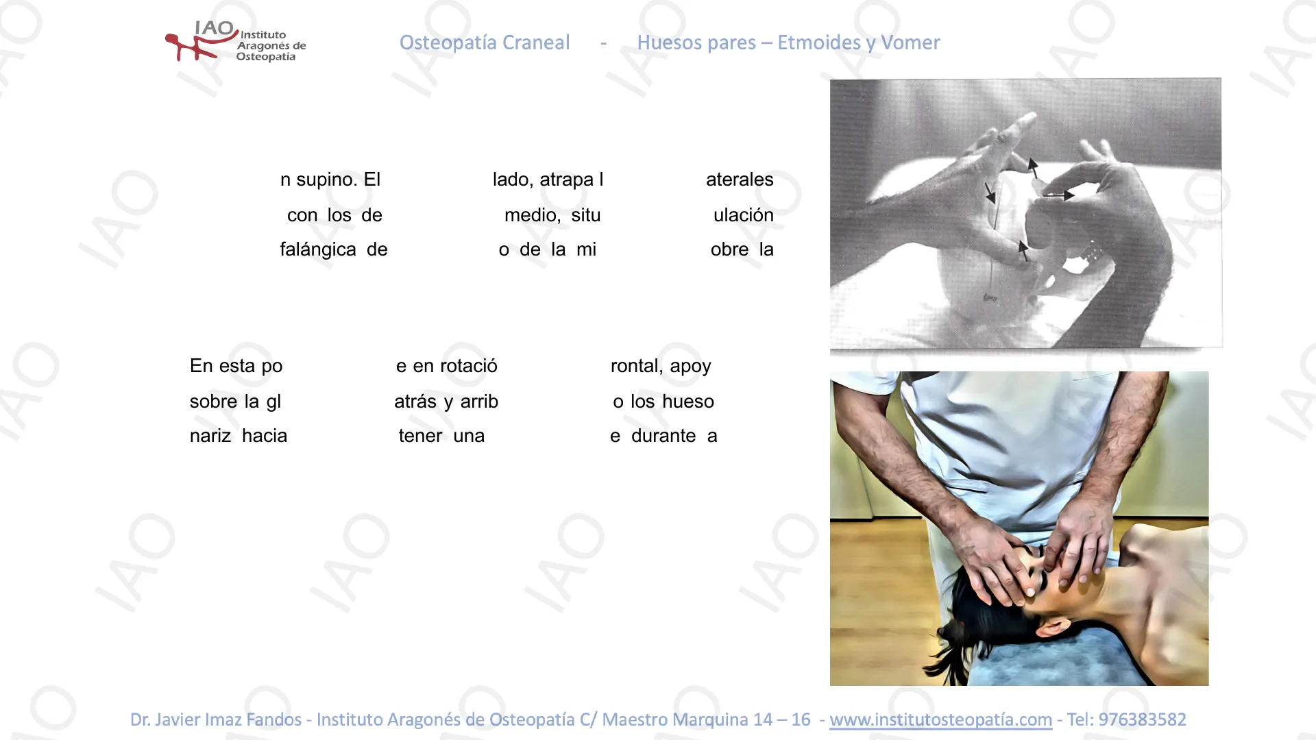 IAO Instituto Aragonés de Osteopatia Osteopatía Craneal Huesos pares - Etmoides y Vomer AC IAO EJEMPLO DE UNA LESION EN ROTACION EXTERNA EN TECNICA INDIRECTA IAO
